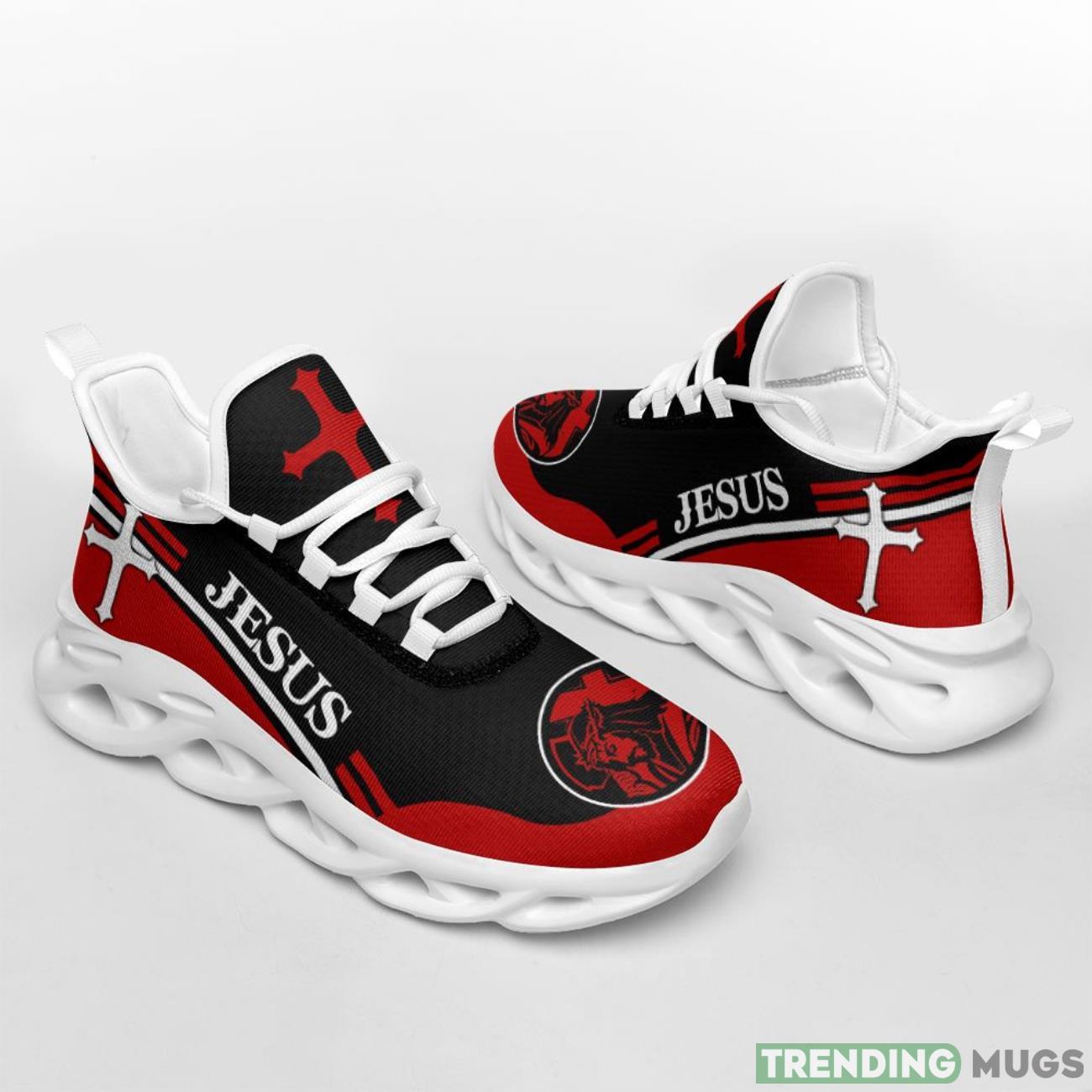 This Jesus Red Black Max Soul Shoes Running Sneakers Sport Sneakers Gift is a breathable, lightweight, and comfortable casual outdoor shoe that has a unique design. It is made of a mesh fabric which makes it sweat absorbent and breathable, while the rubber bottom ensures traction, comfort, and durability. It is available in two colors: black or white sole. There are two styles of shoelace holes so you can choose your preference.