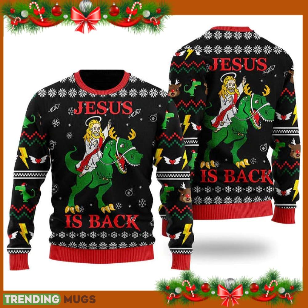 Jesus Ride Dinosaur Is Back Ugly Christmas Sweater Funny Gift For Men And Women Family Holidays