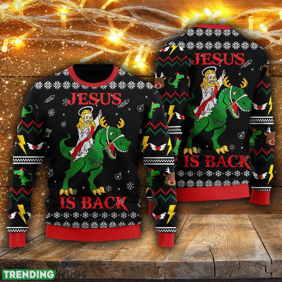 Jesus Ride Dinosaur Jurassic ParkJesus Is Back Ugly Christmas Sweater Men And Women Gift For Christmas Informations: