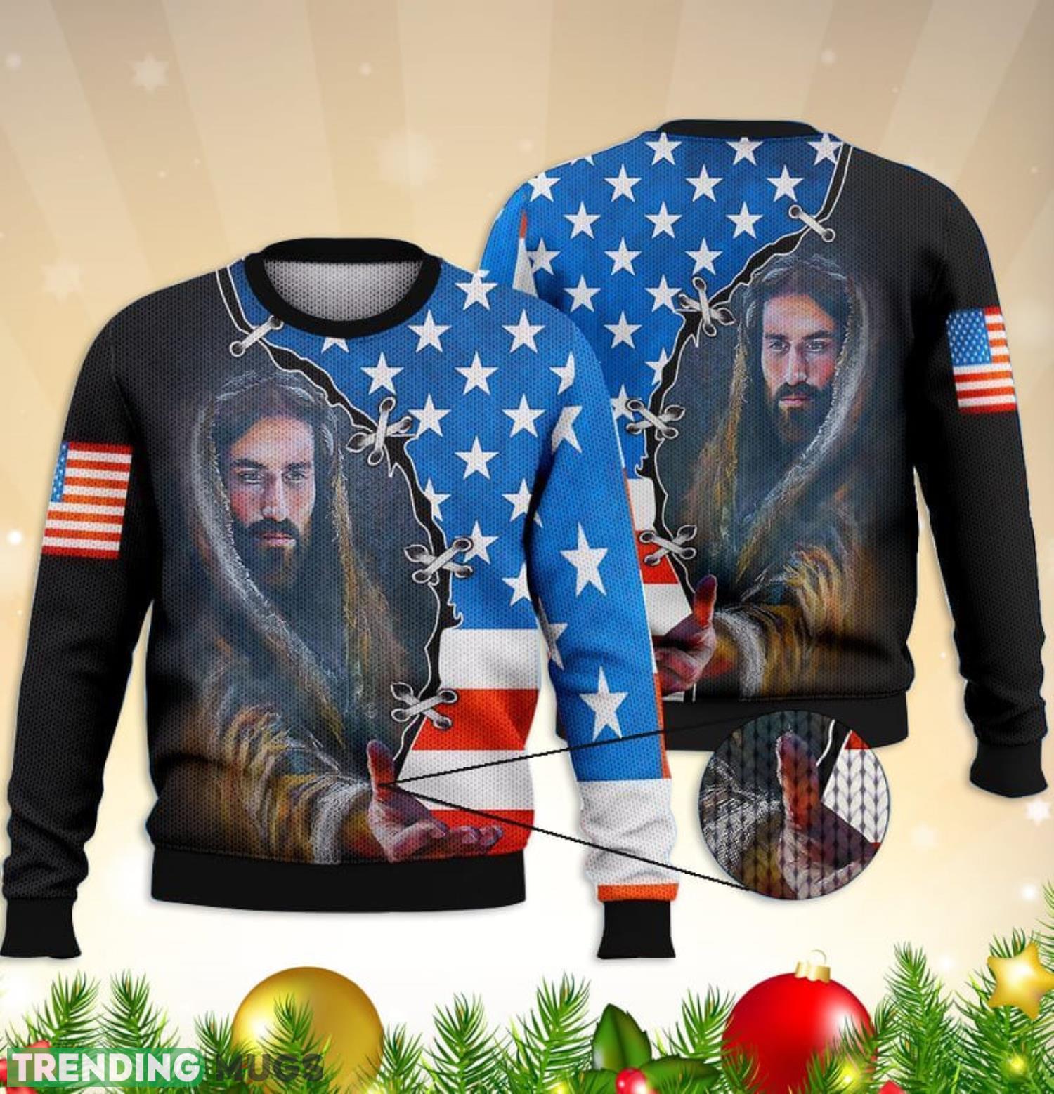 Jesus Us Flag Full Print 3D Ugly Sweater Christmas Gift Sweater Informations: