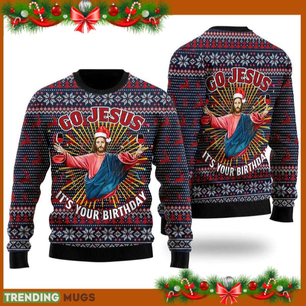 Whether you’re attending an ugly Christmas sweater party or simply want to add some festive flair to your wardrobe, the Jesus’s Birthday Go Jesus Ugly Christmas Sweater is an absolute must-have. Its unique and humorous design will undoubtedly bring smiles to the faces of those around you, spreading the holiday spirit far and wide.