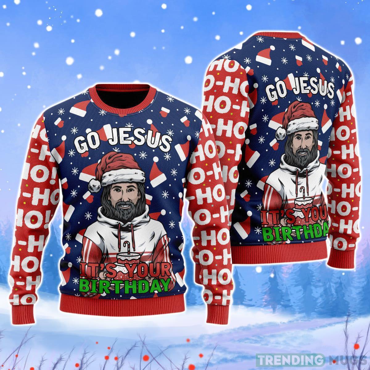 Jesus's Birthday Go Jesus Christmas Unisex Ugly Sweater Product Photo 1