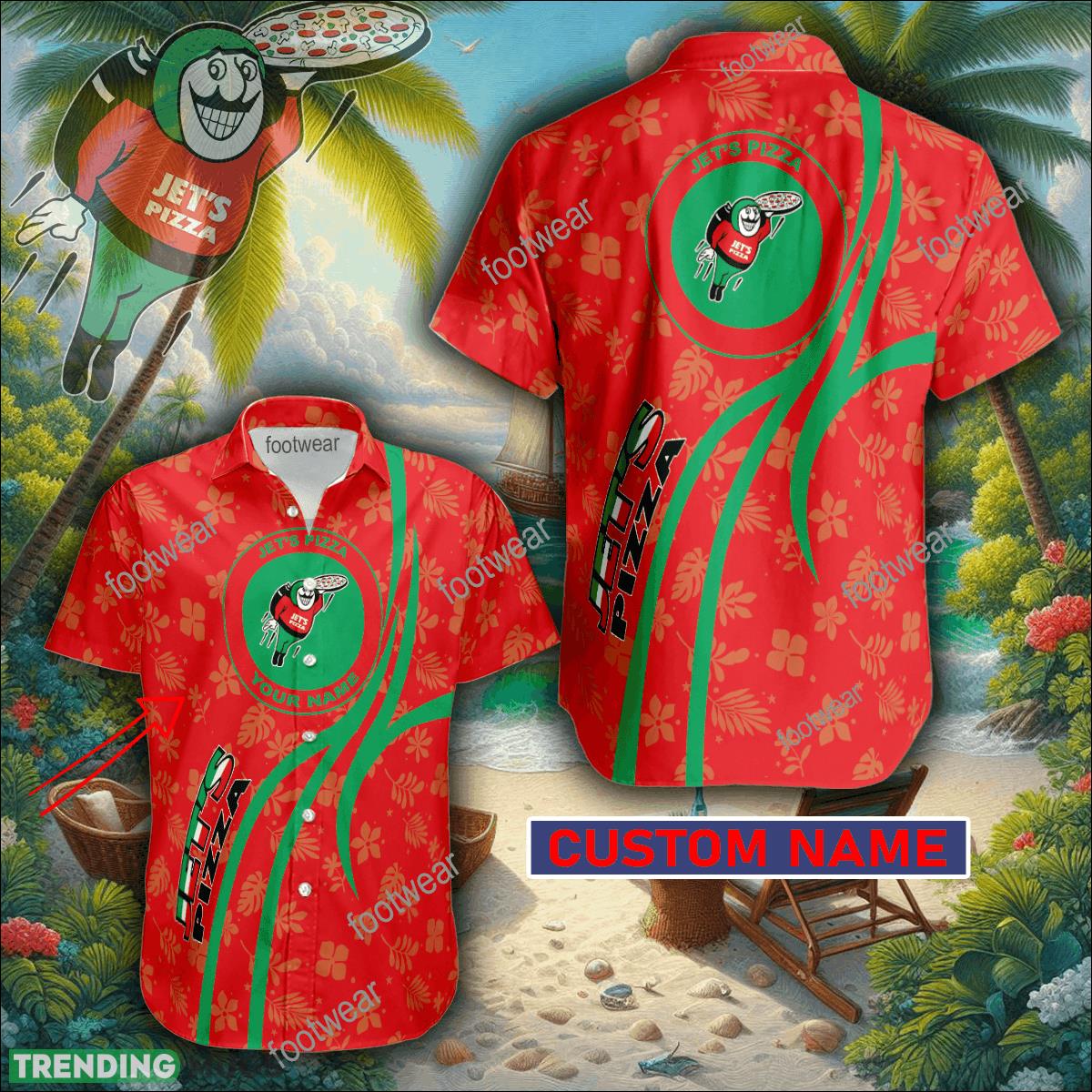Stand out at the beach or any casual outing with this unique Jet’s Pizza 3D Hawaiian Shirt Logo Brand Custom Name Gift Beach. Made with high-quality materials and featuring a personalized touch with your name, this shirt is perfect for pizza lovers and trend-setters alike. Embrace the island vibes and show off your love for Jet’s Pizza in style. Get ready to turn heads and make a statement with this one-of-a-kind Hawaiian shirt.