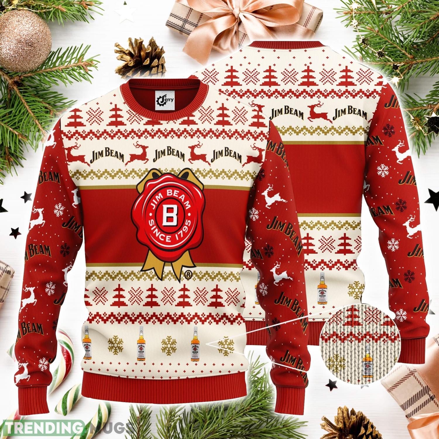 Get ready to rock this holiday season with the ultimate festive fashion statement – the Jim Beam Christmas Gift 3D Ugly Christmas Sweater! This unisex sweater is the perfect Christmas gift for any Jim Beam enthusiast or whiskey lover in your life.