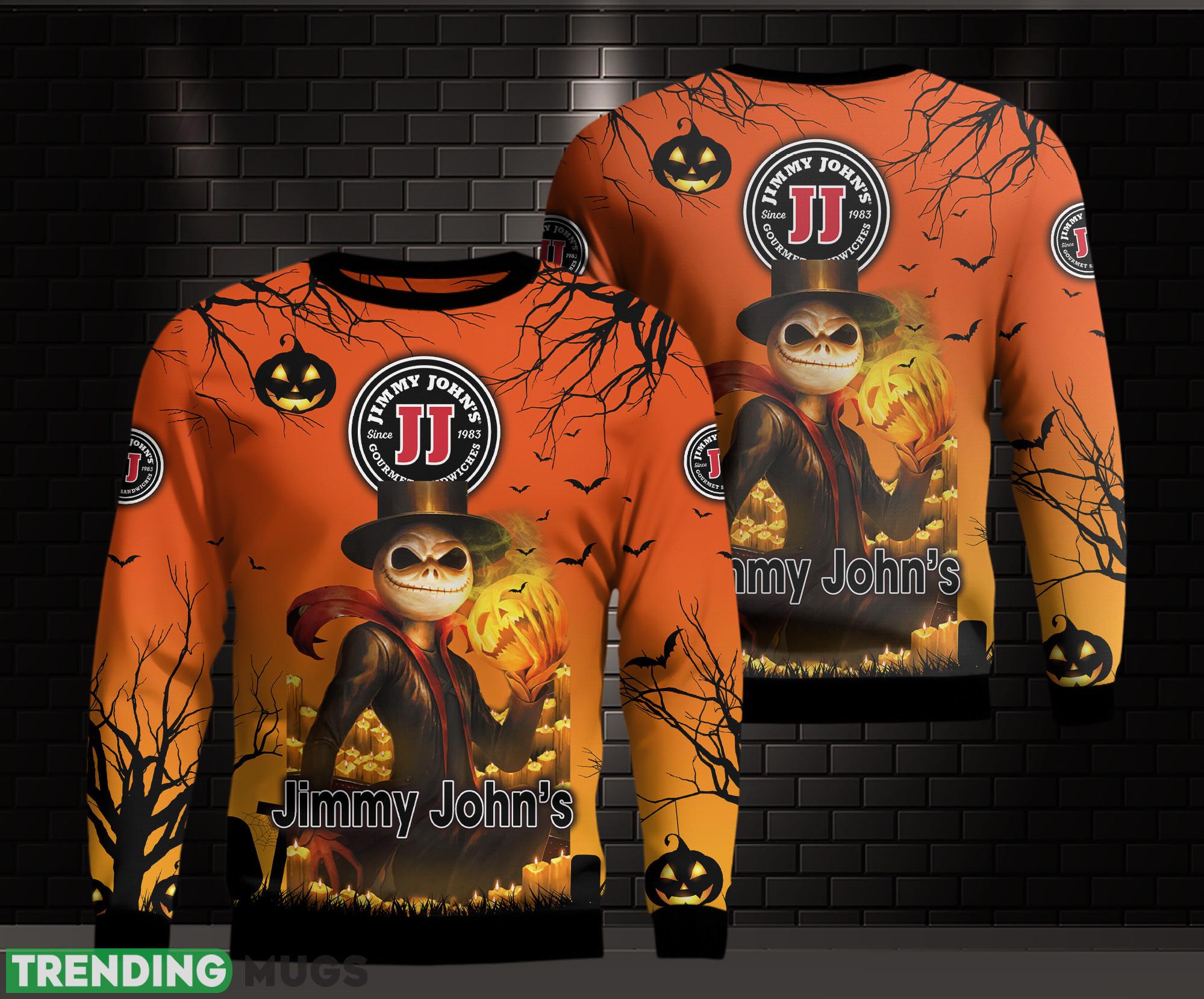 Don’t miss out on the opportunity to rock the Halloween and Christmas season with style and humor. Order your Jimmy John’s Jack Skellington Pumpkin Funny Halloween 3D Sweater now and make this festive period even more memorable!