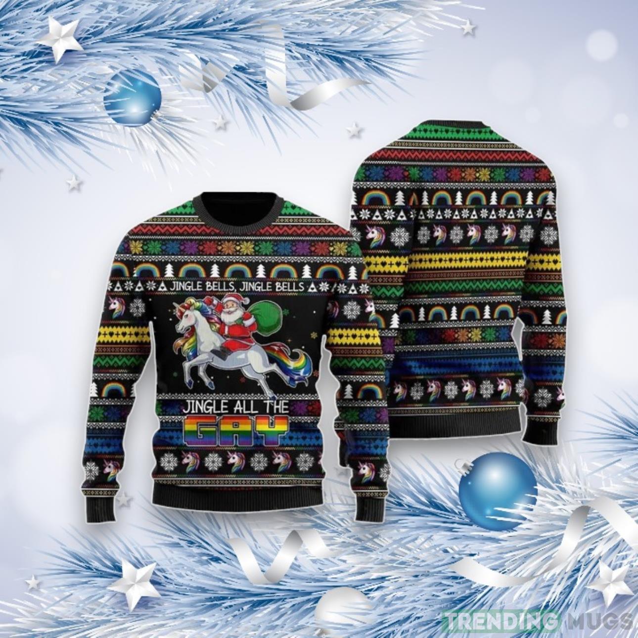 Jingle Bells All The Gay With Santa And Unicorns Ugly Christmas Sweater For Men & Women Product Photo 1