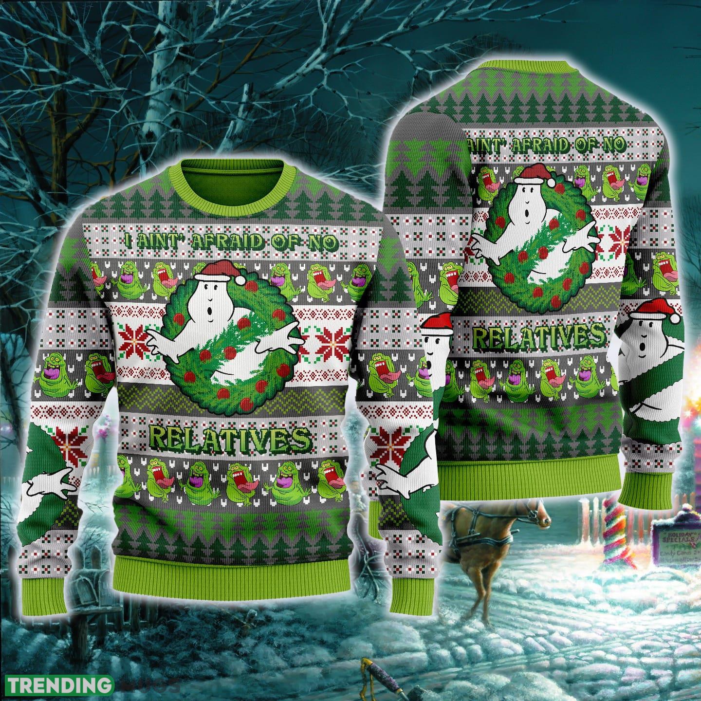 Jinglebusters Ghost Ugly Christmas Sweater I Aint Afraid Of No Relatives Halloween Ghost Gift For Men Women 3D Sweater