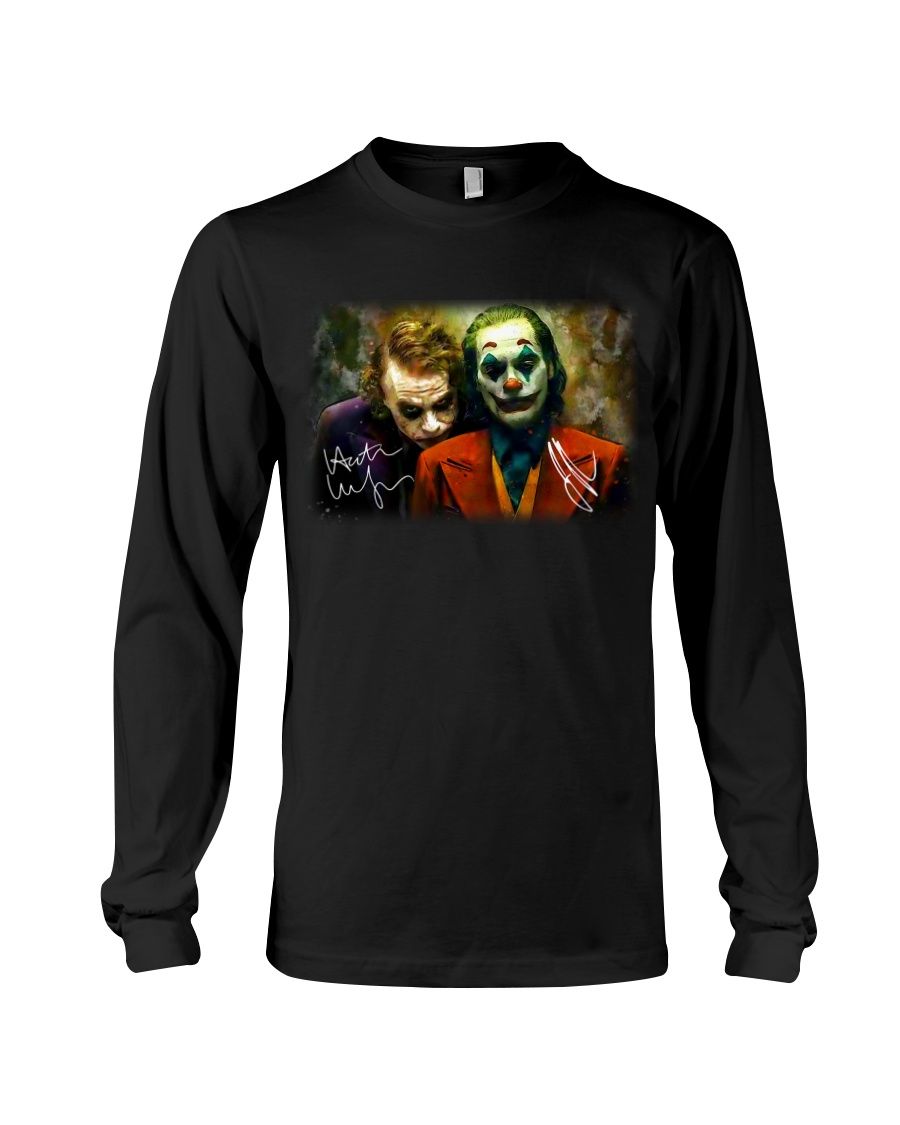 This “Joaquin Phoenix Joker vs Heath Ledger Joker Shirt” available in ✅Hoodie ✅Sweatshirt ✅Sweater, T-Shirt, Long Sleeve, V-Neck Shirt, Ladies Tee. Available.