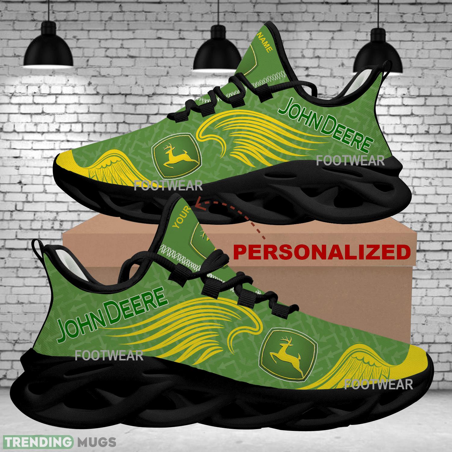 Step up your running game with the John Deere Brand Logo Wings Pattern Max Soul Shoes Personalized Representation Running Sneaker. These stylish sneakers feature a unique design inspired by the iconic John Deere brand logo, giving you a personalized representation like no other. The max soul technology ensures superior comfort and support, making these shoes perfect for all your running needs. Stand out from the crowd and make a statement with these eye-catching sneakers. Order yours today and take your running to the next level!