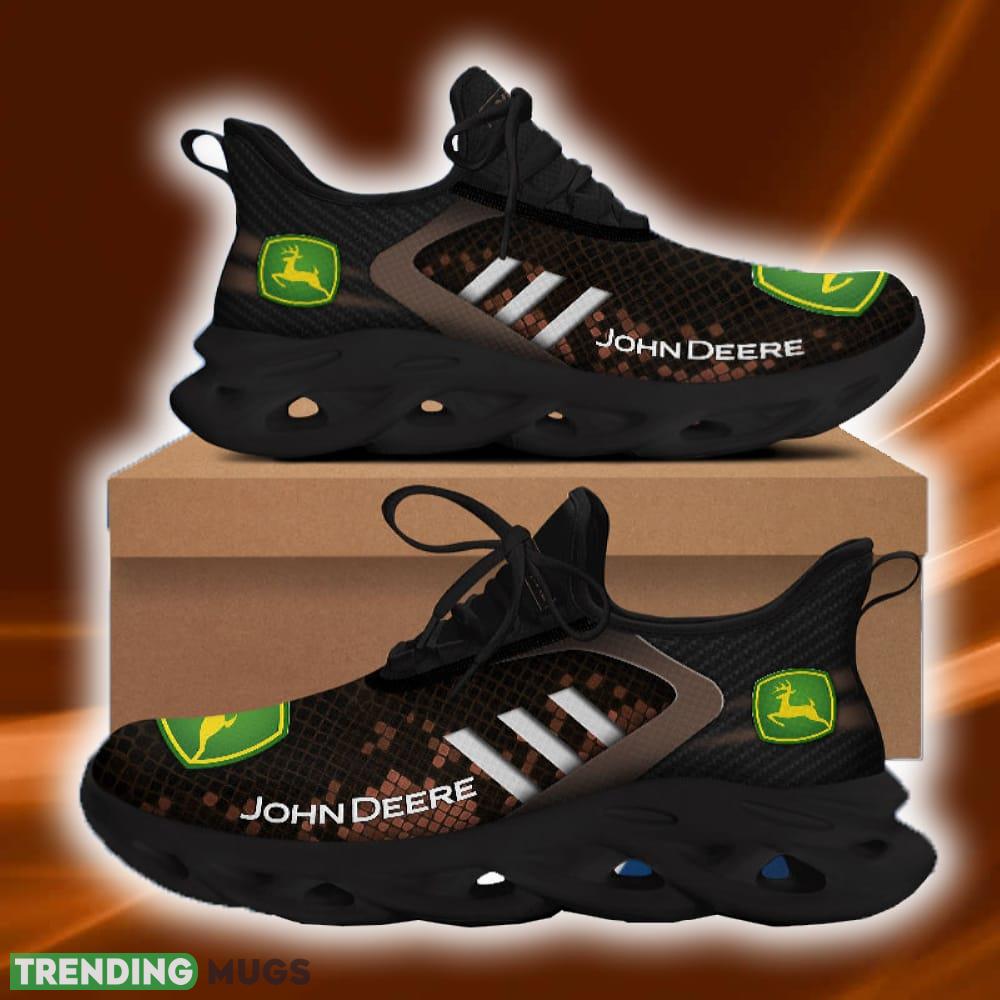 This John Deere Custom Name Chunky Shoes Logo Car Gift Max Soul Sneakers Brown For Fans is a breathable, lightweight, and comfortable casual outdoor shoe that has a unique design. It is made of a mesh fabric which makes it sweat absorbent and breathable, while the rubber bottom ensures traction, comfort, and durability. It is available in two colors: black or white sole. There are two styles of shoelace holes so you can choose your preference.