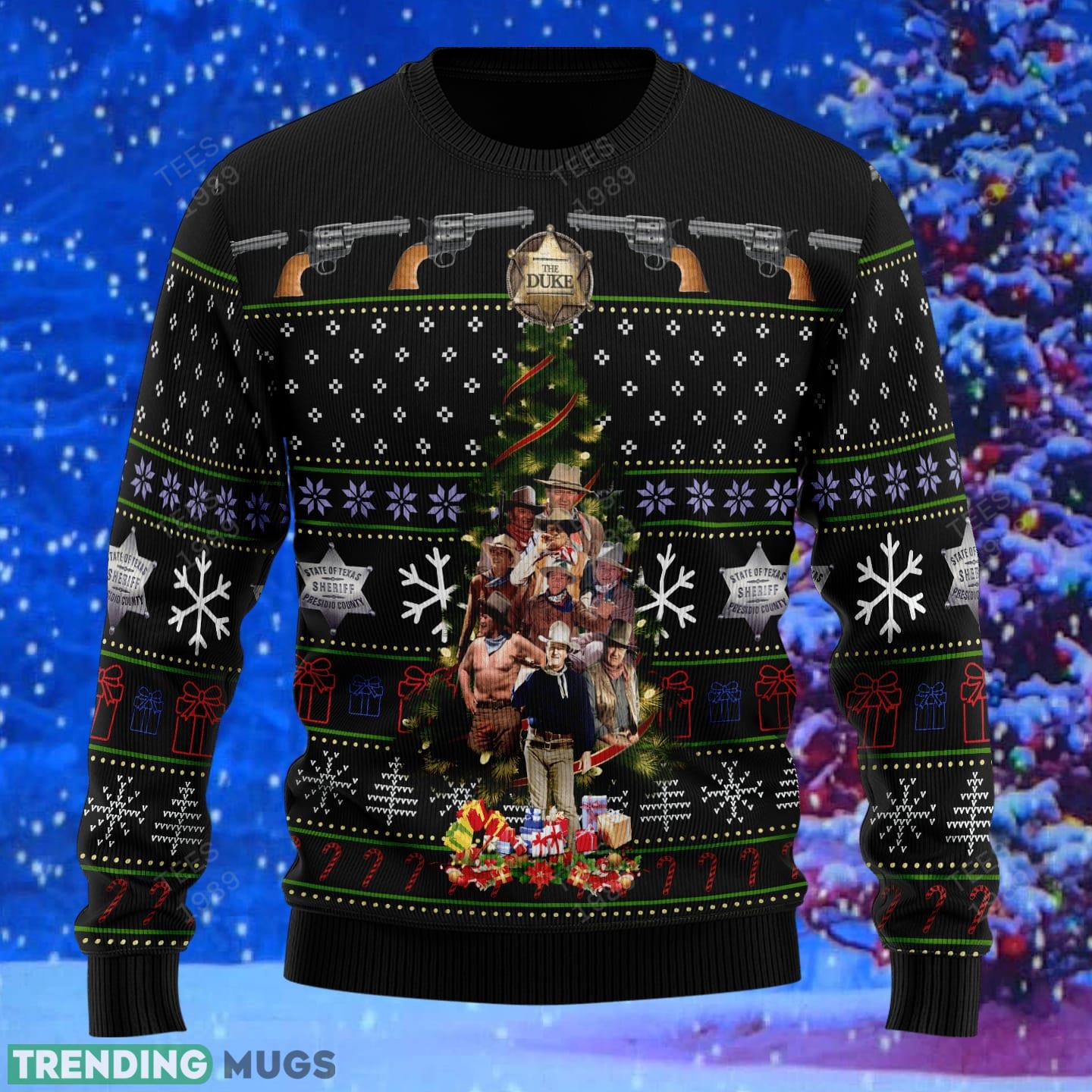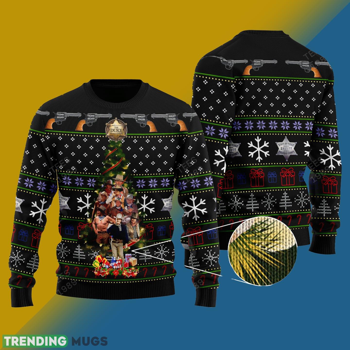 Whether you’re attending an ugly sweater party, going caroling, or simply snuggling up by the fireplace, our John Wayne Christmas Tree Knitted Xmas Sweater Gift is a must-have addition to your holiday attire. Spread the joy and celebrate the season in style with this exceptional sweater. Order yours today and make this Christmas one to remember!