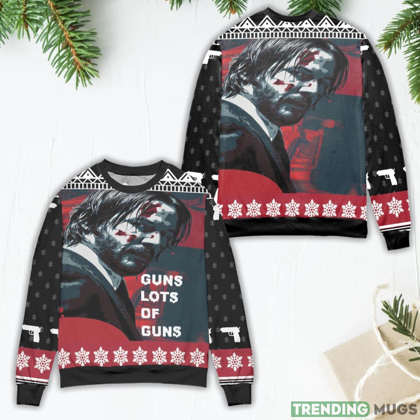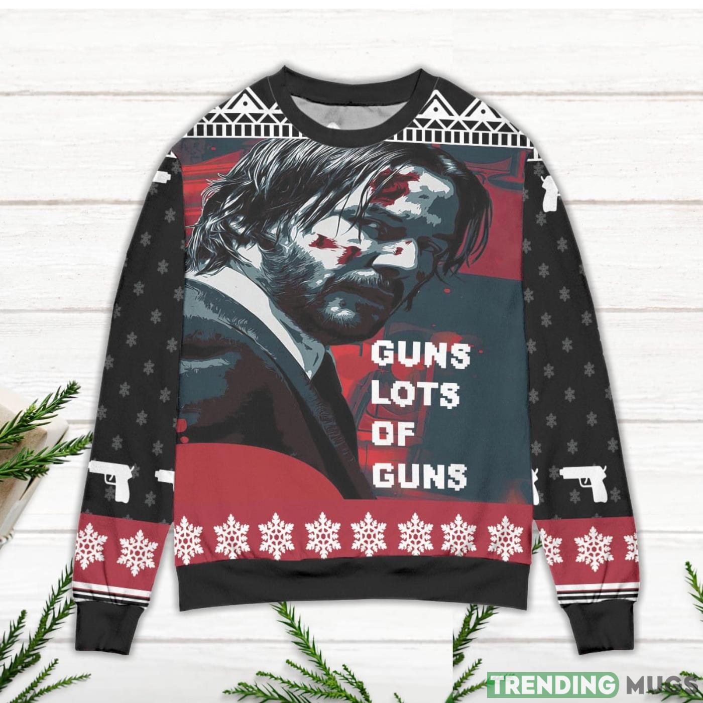 John Wick Guns Lots Of Guns Snowflake Pattern Ugly Christmas Sweater Informations: