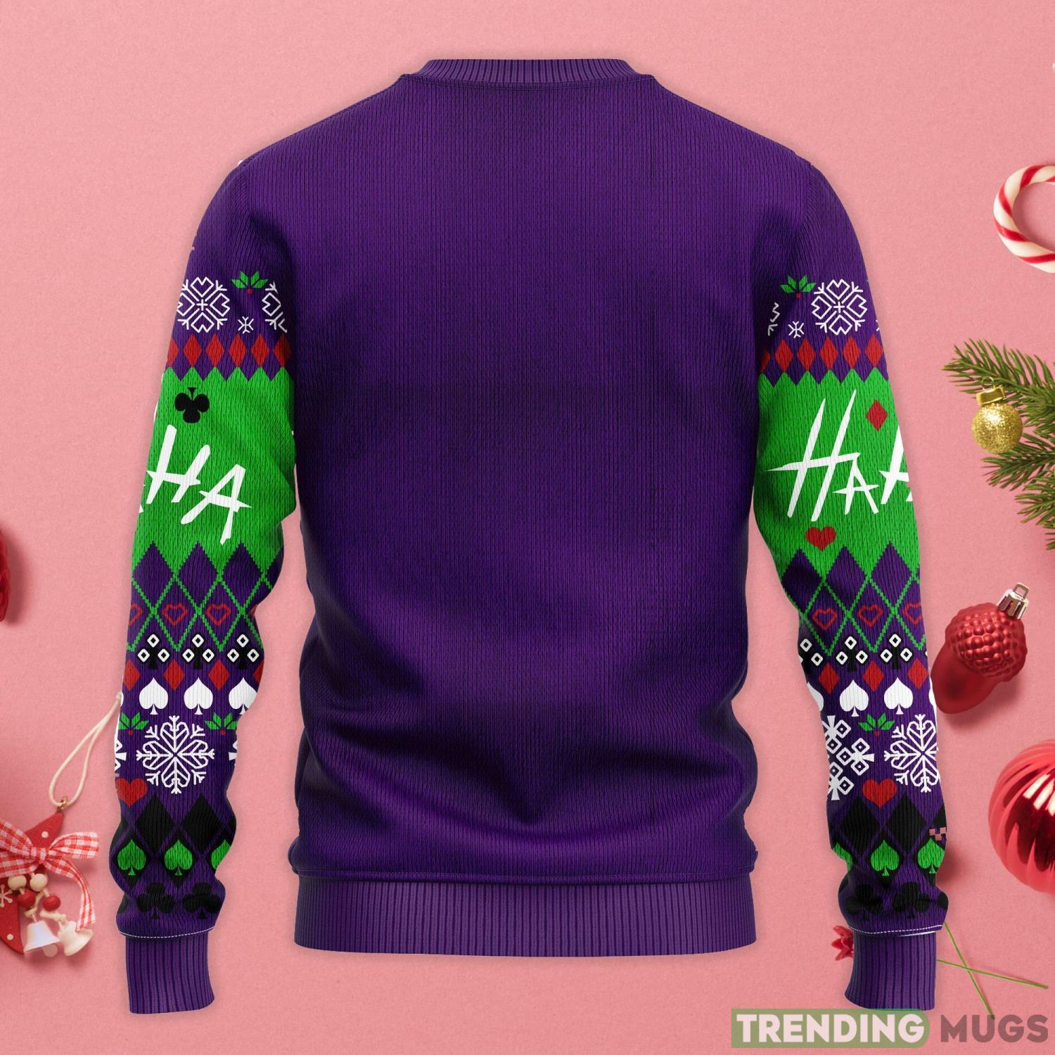 Introducing the Joker Green ha Ha Happy Christmas Gift Ugly Christmas Sweater! This festive and fun sweater is sure to get you in the holiday spirit! It features the Joker’s iconic green and purple colors and a fun “ha ha” design. It’s perfect for ugly sweater parties, Christmas parties, or just for adding some holiday cheer to your day!