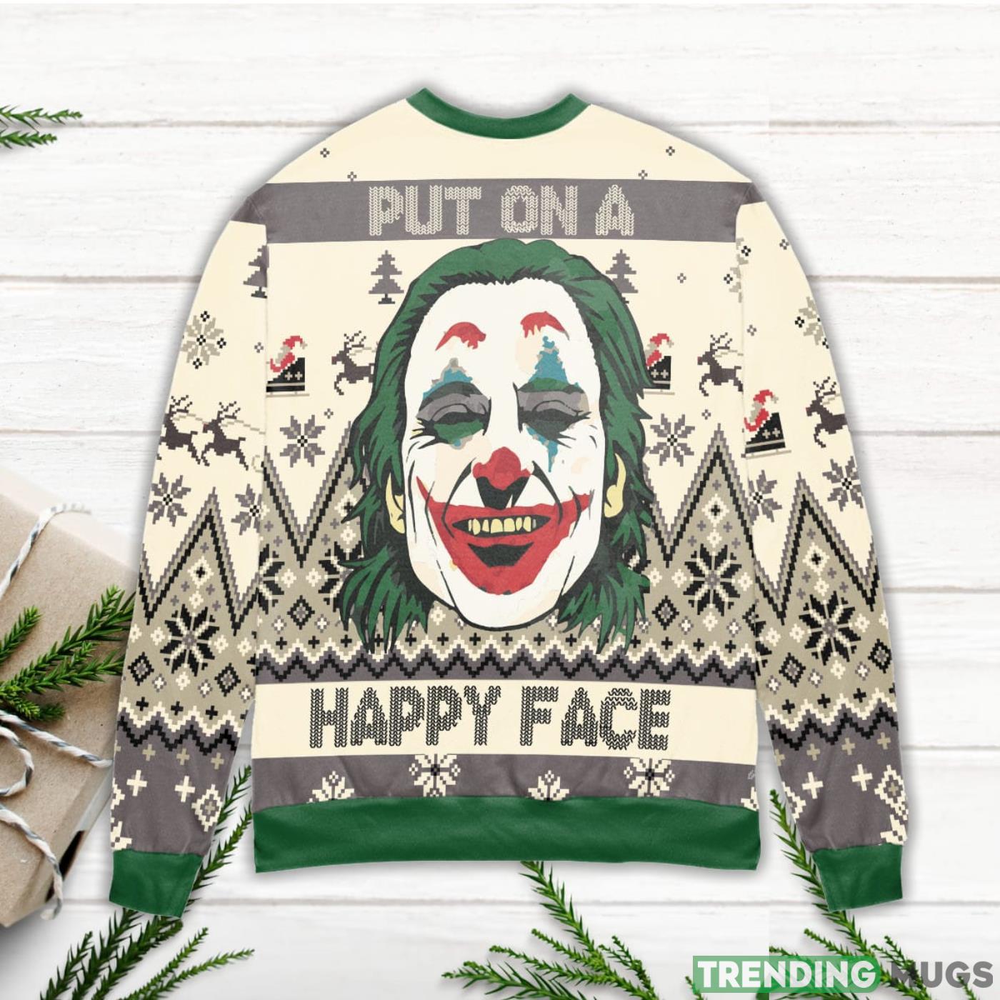 Some of the Joker Put On A Happy Face Reindeer & Pine Tree Pattern Ugly Christmas Sweater photos