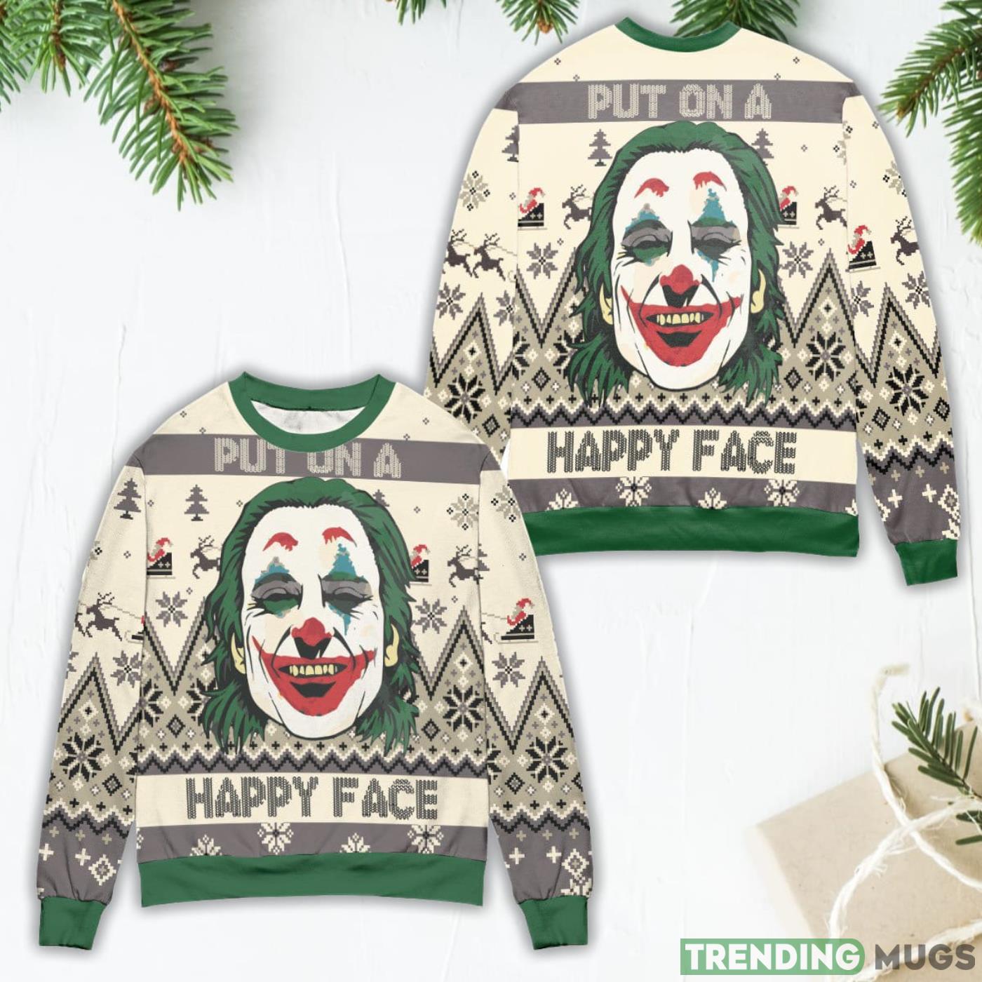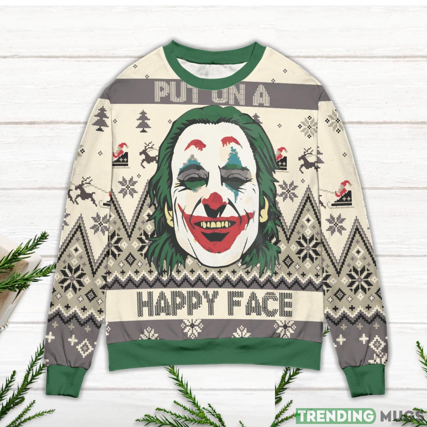 Looking for a festive and stylish sweater to keep you warm this winter? Look no further than the Joker Put On A Happy Face Reindeer & Pine Tree Pattern Ugly Christmas Sweater! This fun and festive sweater is perfect for anyone who wants to look their best during the holiday season. Made from a cozy and comfortable blend of polyester and cotton, this sweater will keep you warm all day long. And don’t forget about the amazing joker design on the front, it’s sure to make a lasting impression. So don’t wait any longer, order your Joker Put On A Happy Face Reindeer & Pine Tree Pattern Ugly Christmas Sweater today!