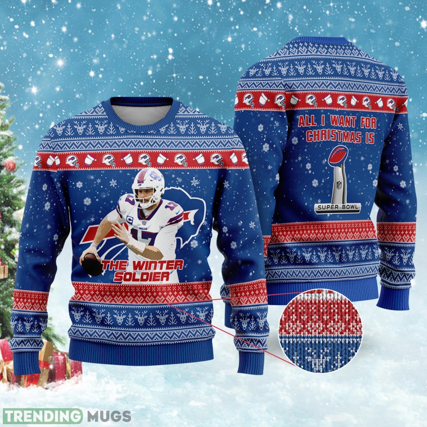 Josh Allen The Winter Soldier All I Want For Christmas NFL Ugly Christmas Sweater Christmas Gift For Sport Fans Informations: