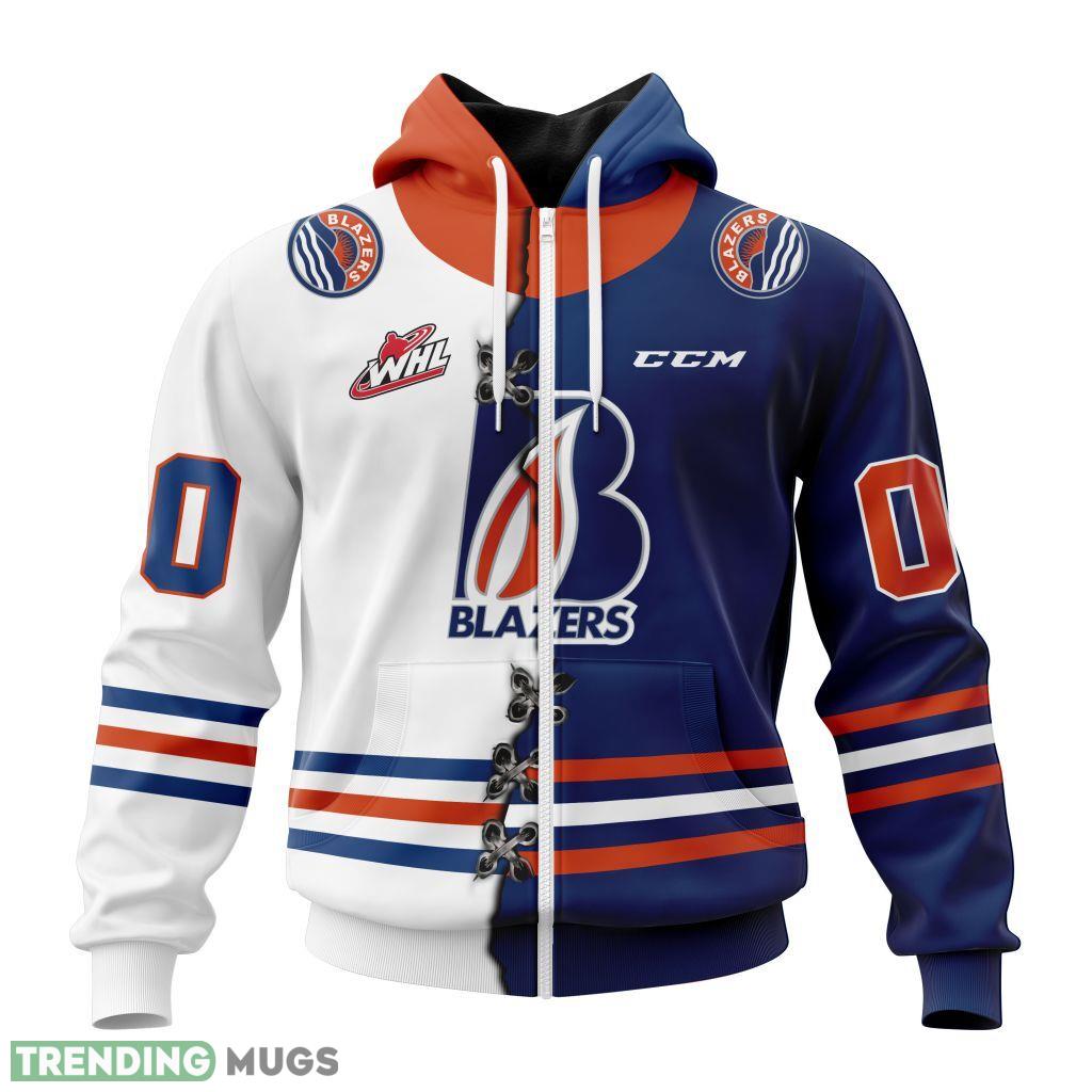 Get ready to show your support for the Kamloops Blazers in style with our exclusive Western Hockey League WHL Mix Home And Away Jersey 3D Hoodie. This unique hoodie features a custom number and name design, making it a must-have for any die-hard fan. Made with high-quality materials, this hoodie is not only stylish but also comfortable to wear. Stand out from the crowd and represent your favorite team in the most fashionable way possible. Don’t miss out on this limited edition hoodie – order yours today!