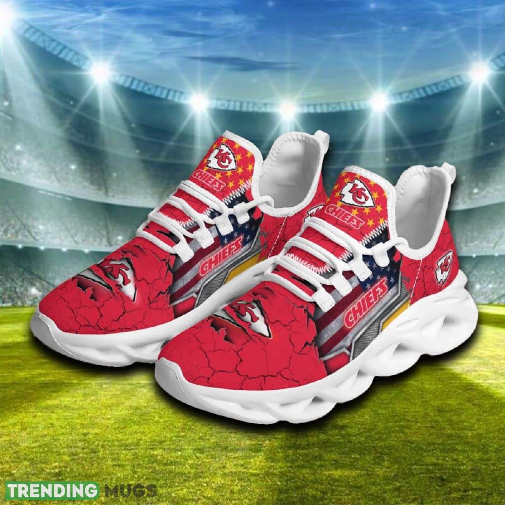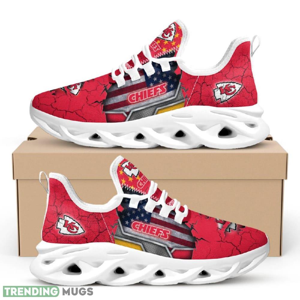 Show your love for the Kansas City Chiefs with these stylish American Flag Max Soul Running Shoes! These chunky sneakers are not only a great gift for any Chiefs fan, but they also provide maximum comfort and support for all-day wear. With a bold design featuring the American flag and Chiefs logo, these sneakers are sure to turn heads wherever you go. Step up your shoe game and represent your favorite team in style with these Kansas City Chiefs Max Soul Running Shoes!