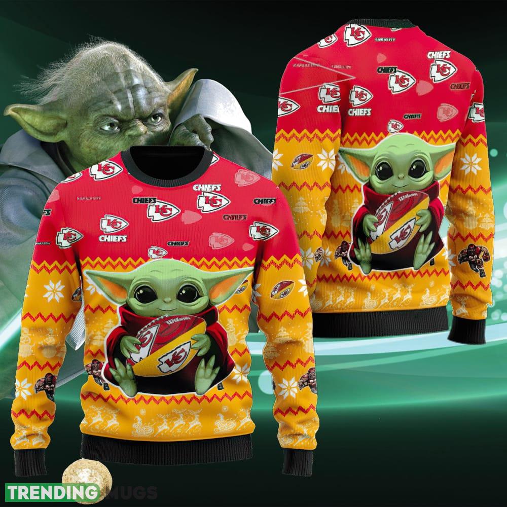 Kansas City Chiefs Baby Yoda Shirt For American Football Fans Ugly Christmas Sweater AOP Fashionable 3D Sweater