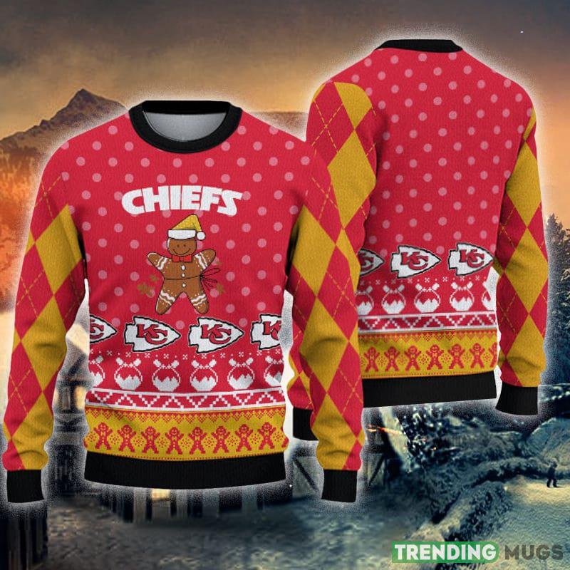 Kansas City Chiefs Christmas Gingerbread Man Knitted Ugly Christmas Sweater AOP Gift For Men And Women Informations: