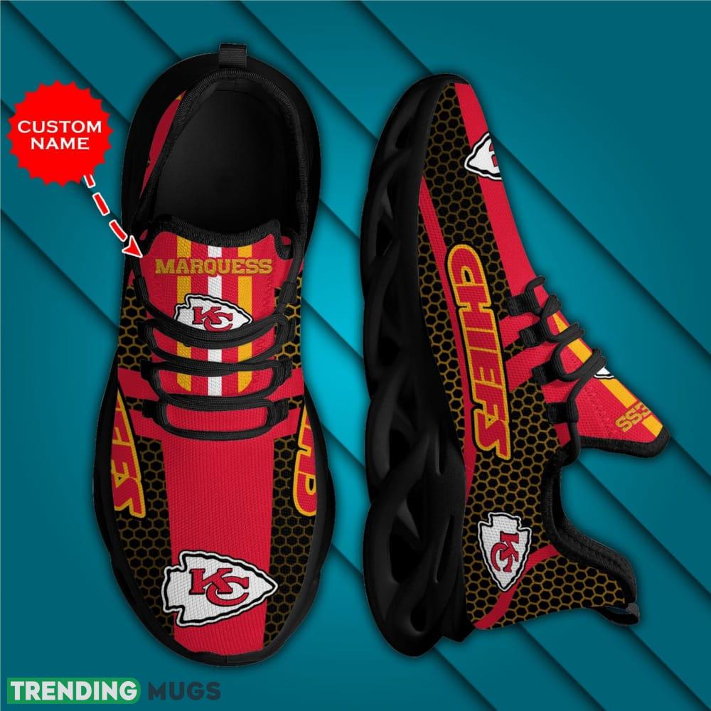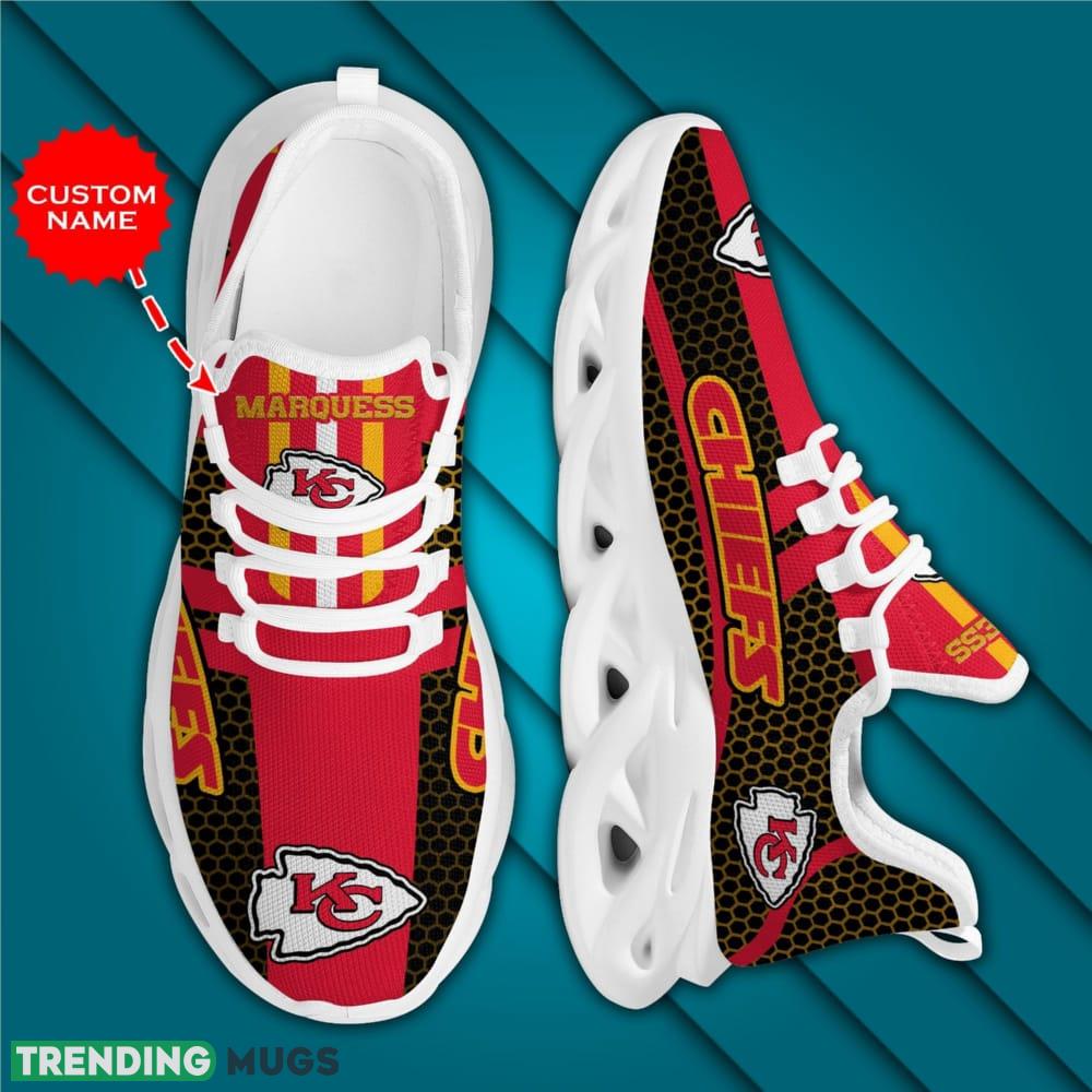 This Kansas City Chiefs Collection Custom Name Max Soul Shoes Luxury NFL Clunky For Men Women Gift is a breathable, lightweight, and comfortable casual outdoor shoe that has a unique design. It is made of a mesh fabric which makes it sweat absorbent and breathable, while the rubber bottom ensures traction, comfort, and durability. It is available in two colors: black or white sole. There are two styles of shoelace holes so you can choose your preference.