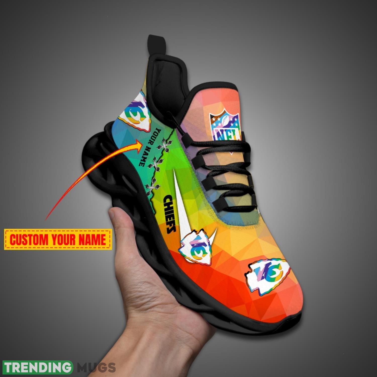 Kansas City Chiefs Colorful Sneakers NFL Max Soul Shoes For Fans Custom Name