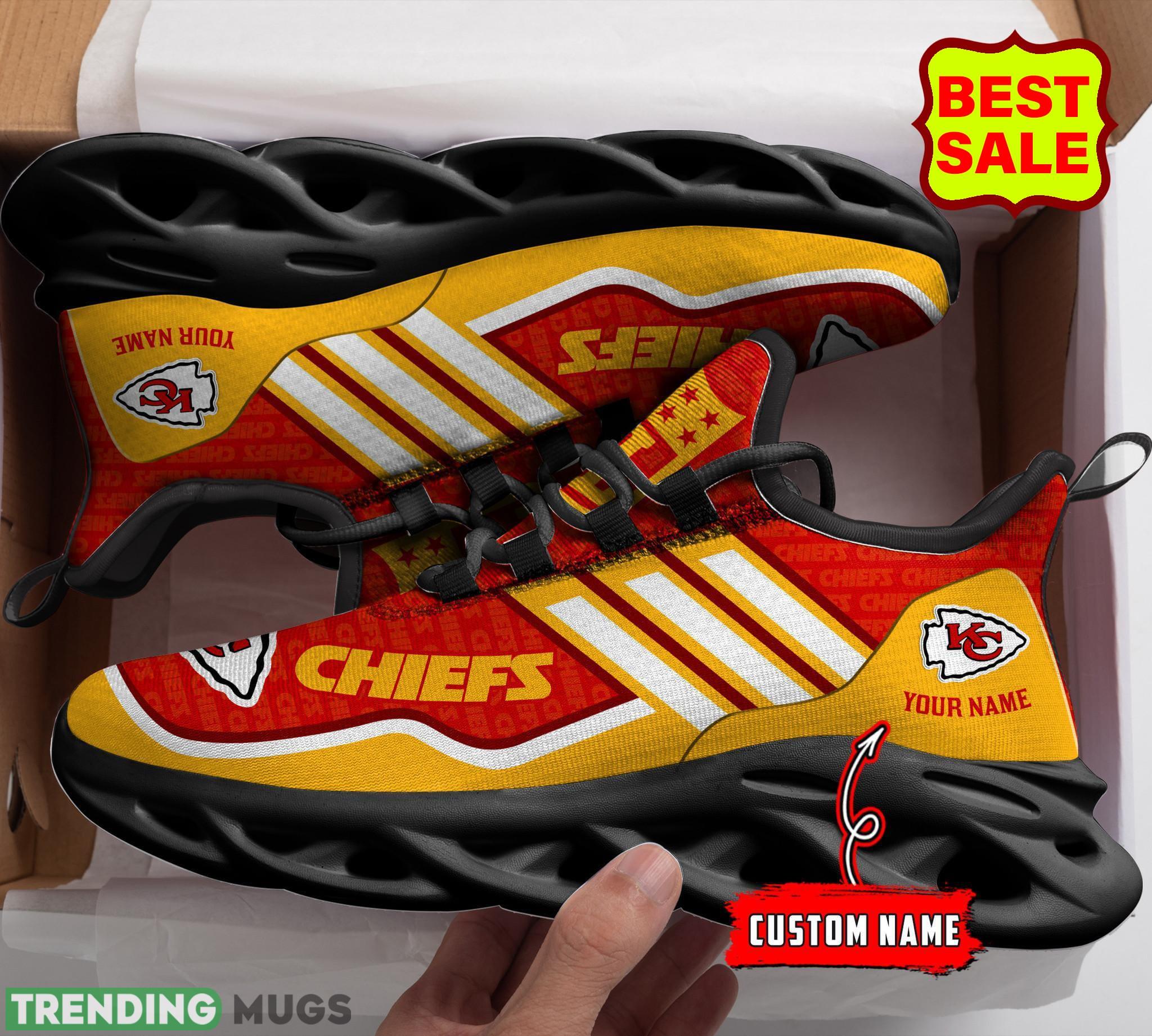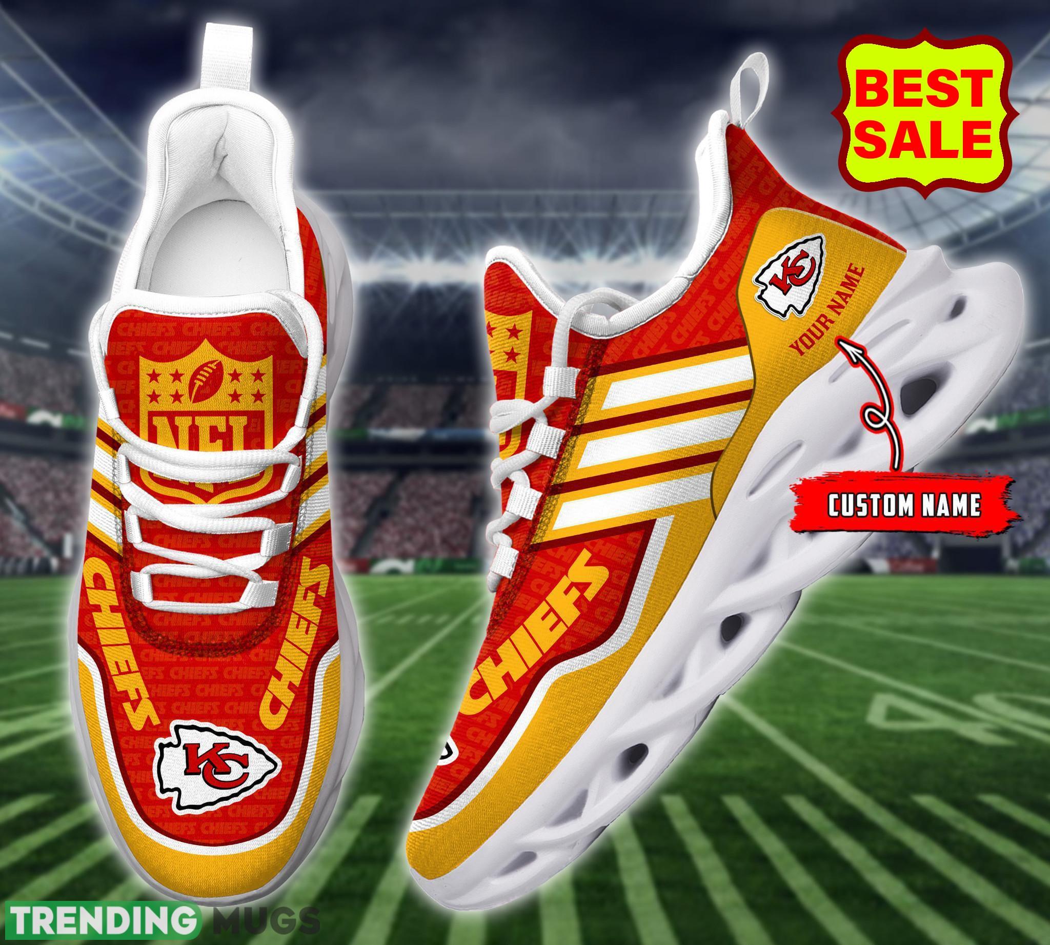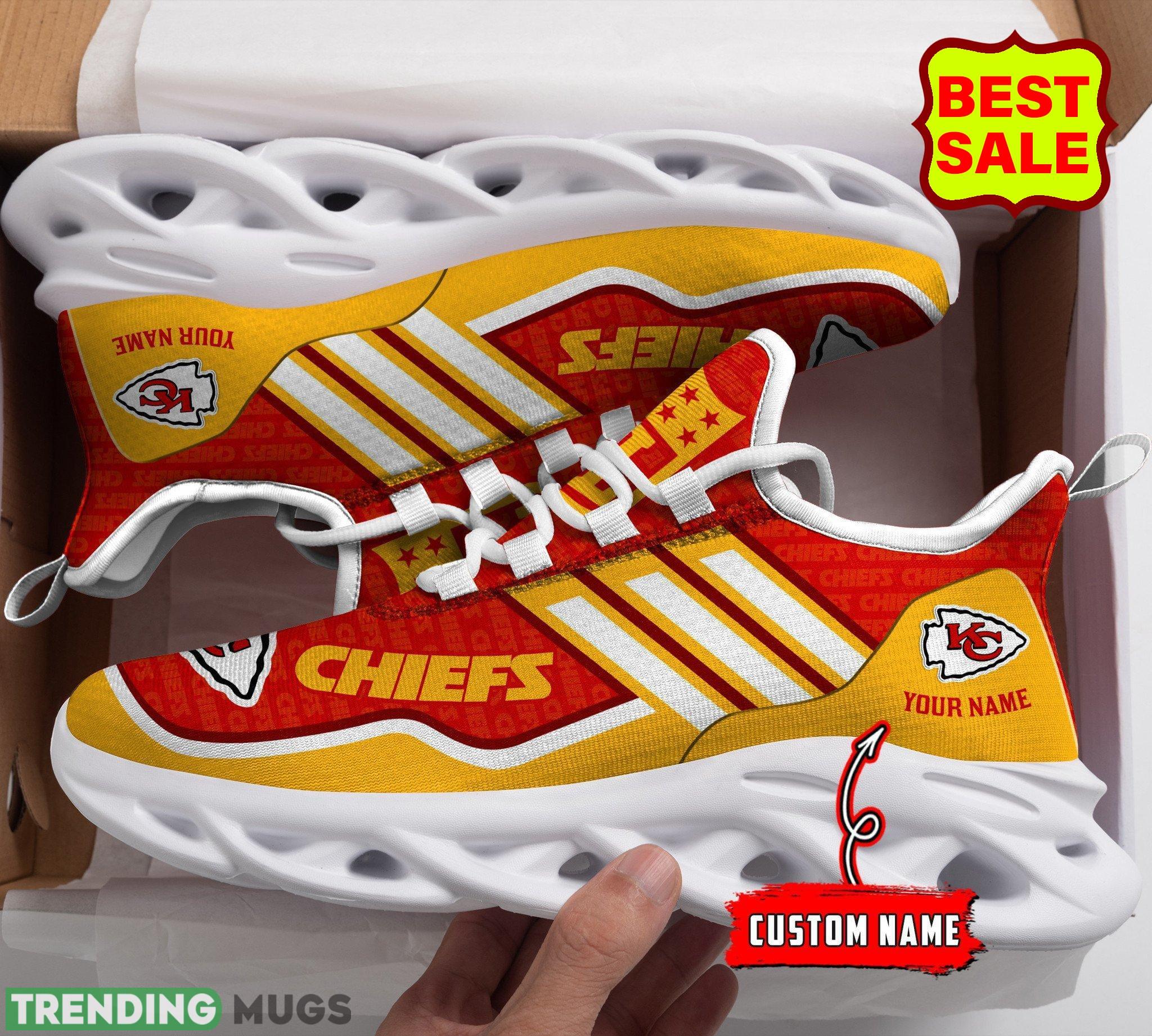 Featuring the iconic Chiefs logo prominently displayed on the side, these sneakers are a bold statement of your unwavering support. But what sets them apart is the personalized touch they offer. With the option to add your own name to the design, these sneakers become a unique keepsake that truly represents your love for the team.