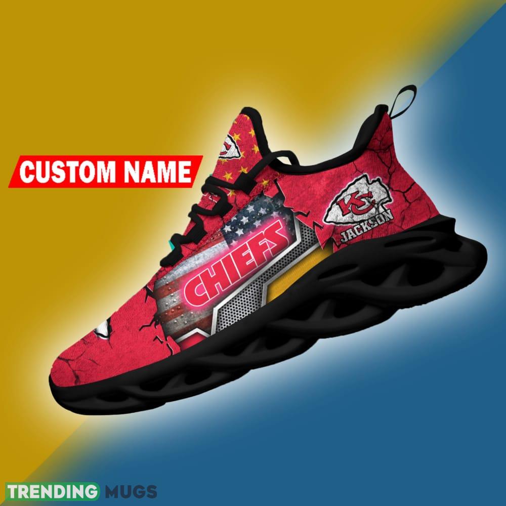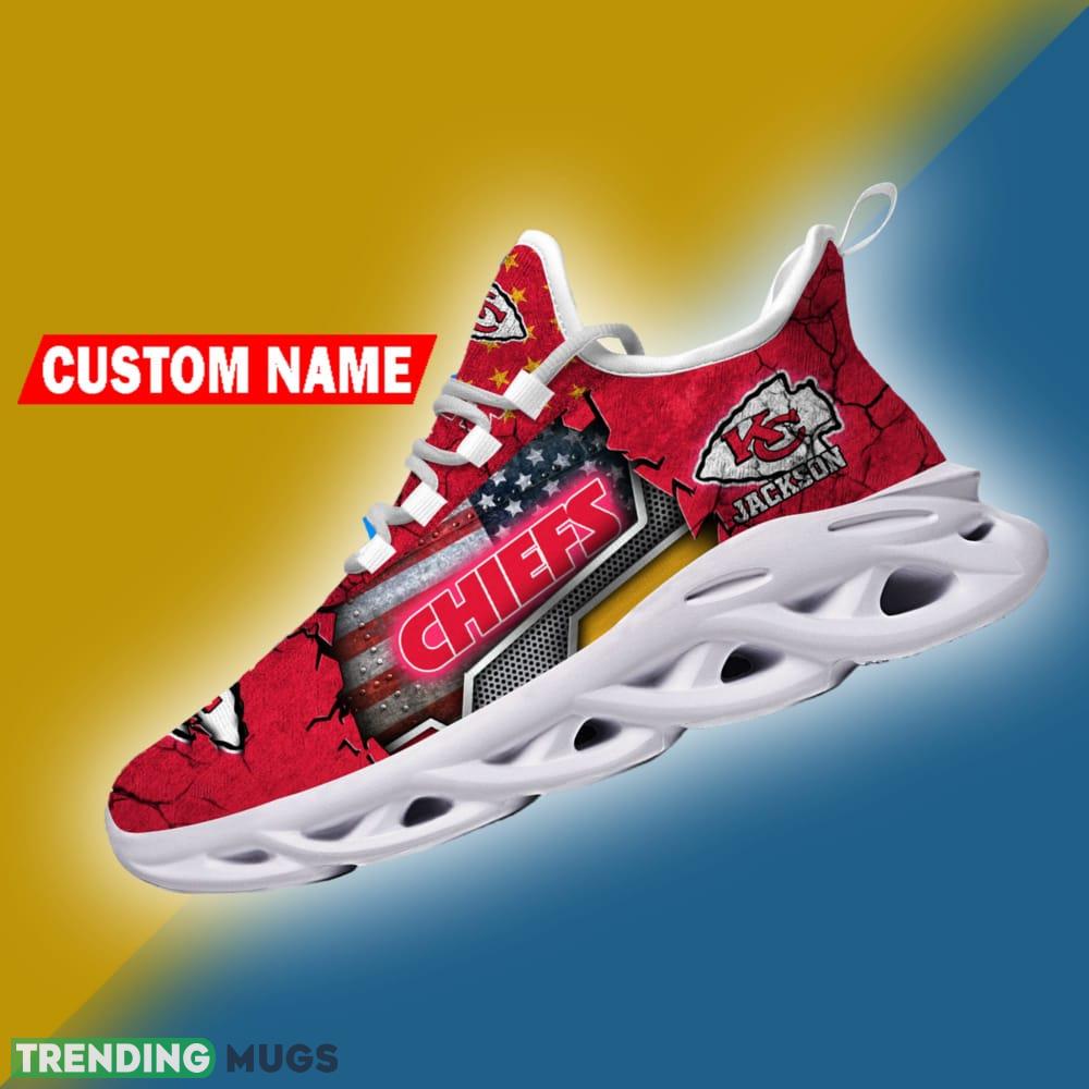 Become the envy of your fellow Chiefs fans and make a statement with the Kansas City Chiefs NFL Sport Sneakers Flag Pattern Max Soul Shoes Personalized. Order yours today and step up your game both on and off the field!