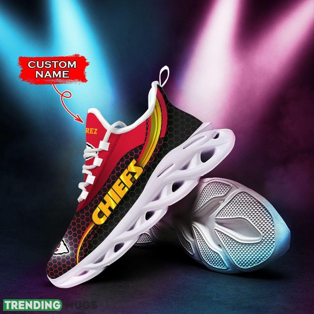 Elevate your game day style with our Kansas City Chiefs Organic Custom Name Max Soul Shoes. Designed for both men and women, these luxurious NFL Clunky shoes are the ultimate gift for any die-hard Chiefs fan.