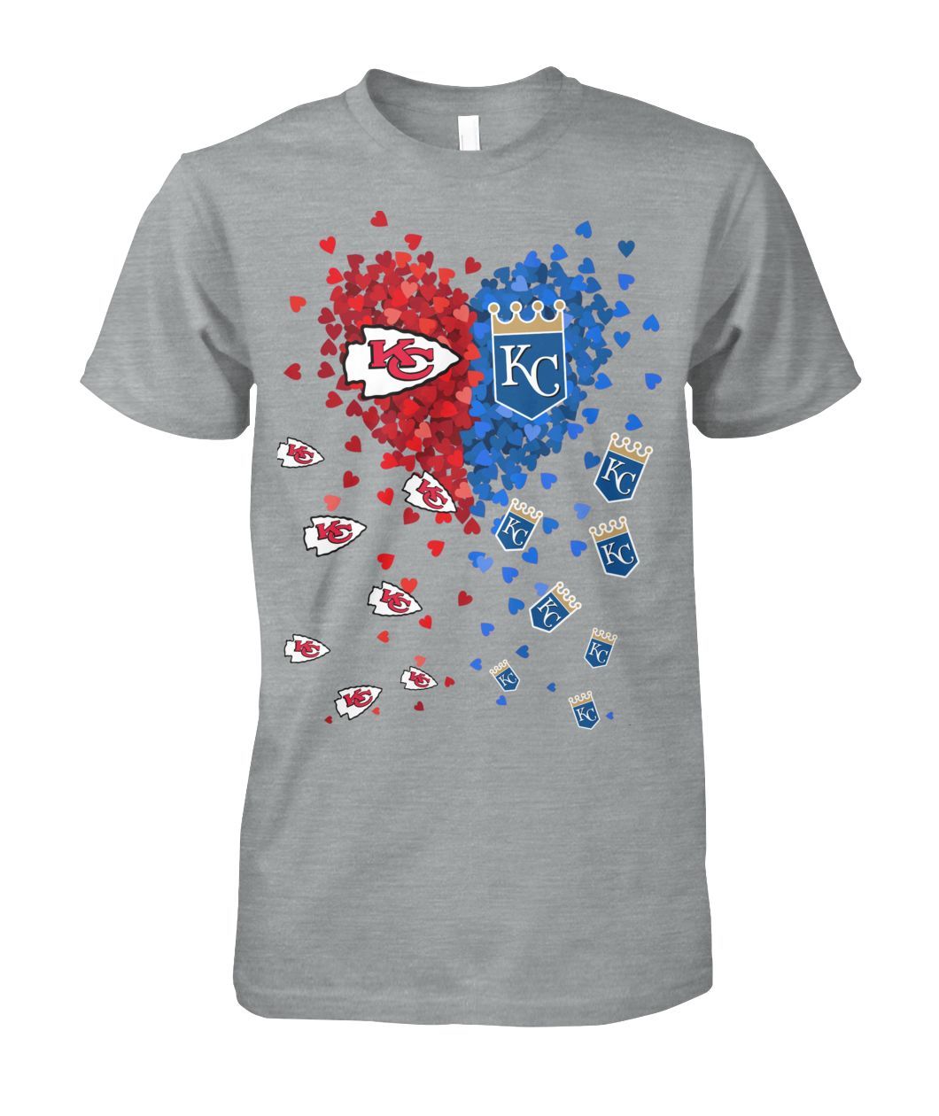 Kansas City Chiefs vs Kansas City Royals Hearts Love Shirt. Are you a fan of the Kansas City Chiefs vs Kansas City Royals? This is a cute shirt for you. It available in t-shirt, hoodies, long sleeve and tank top.