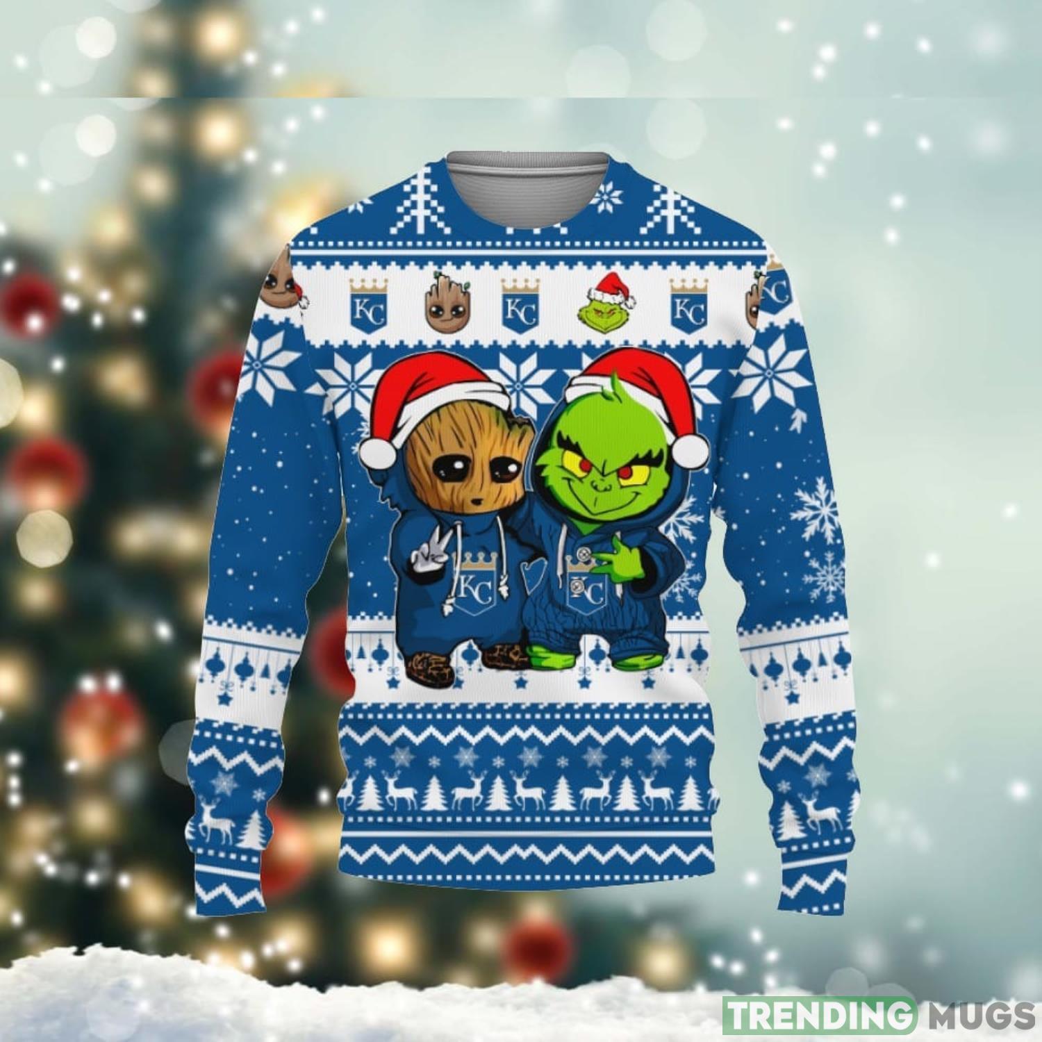 Kansas City Royals Baby Groot And Grinch Best Friends 3D Ugly Christmas Sweater Unisex Christmas Gift Product Photo 1