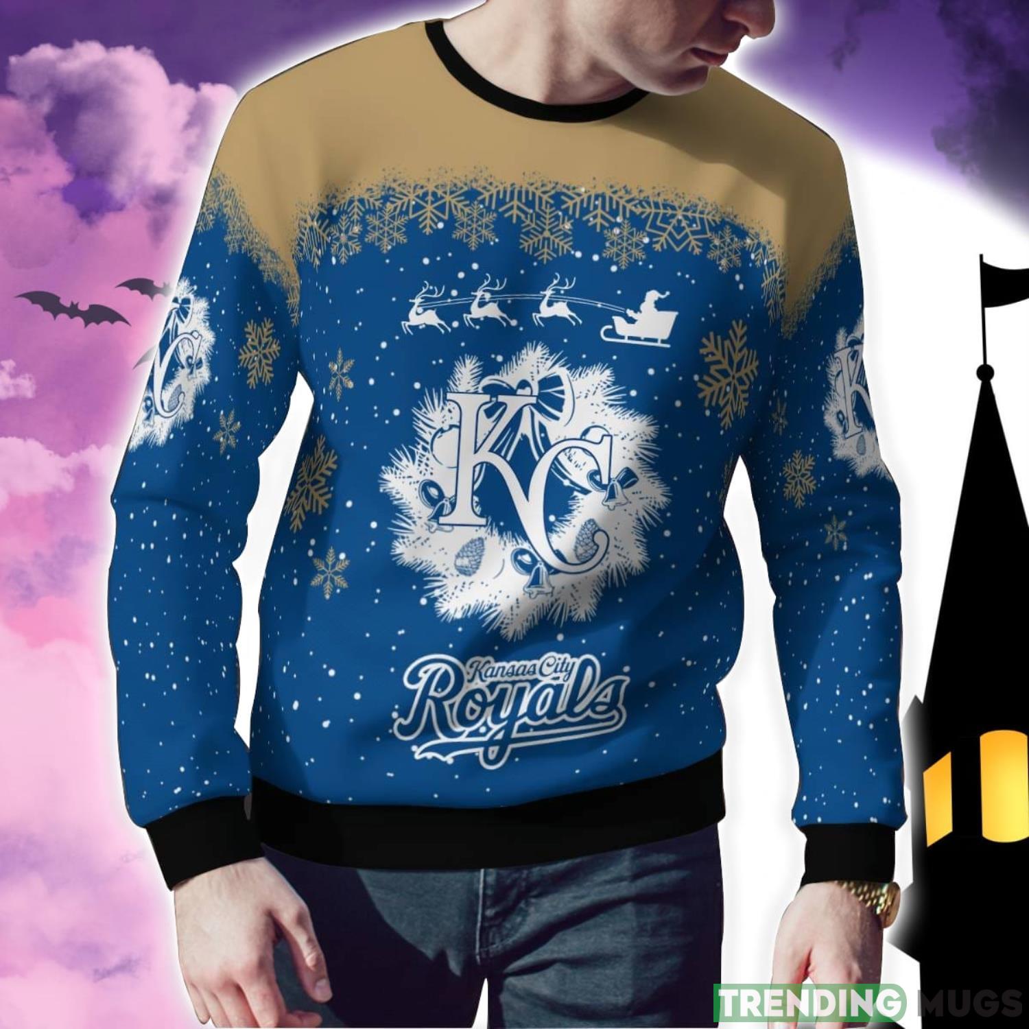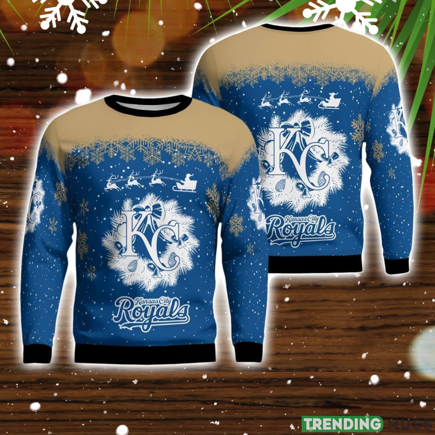 Kansas City Royals Santa sleigh driving reindeer Pattern Ugly Christmas Sweater Informations: