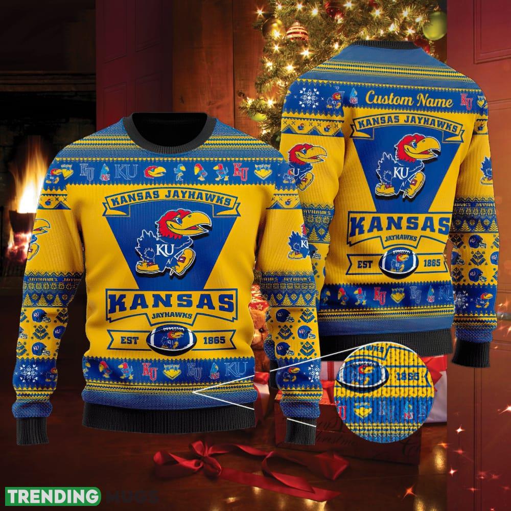 Kansas Jayhawks Football Team Logo Knitted Christmas 3D Sweater Friends Custom Name Informations: