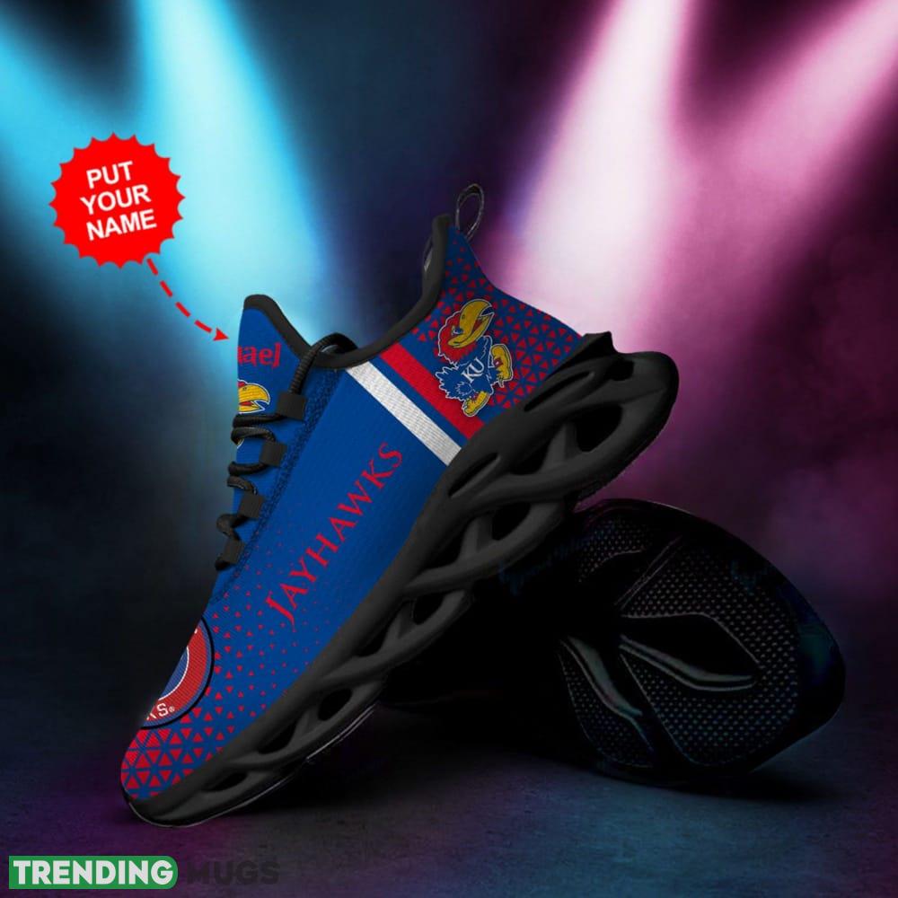 Kansas Jayhawks Logo Triangle Pattern Custom Name 3D Max Soul Sneaker Shoes In Blue And Red information: