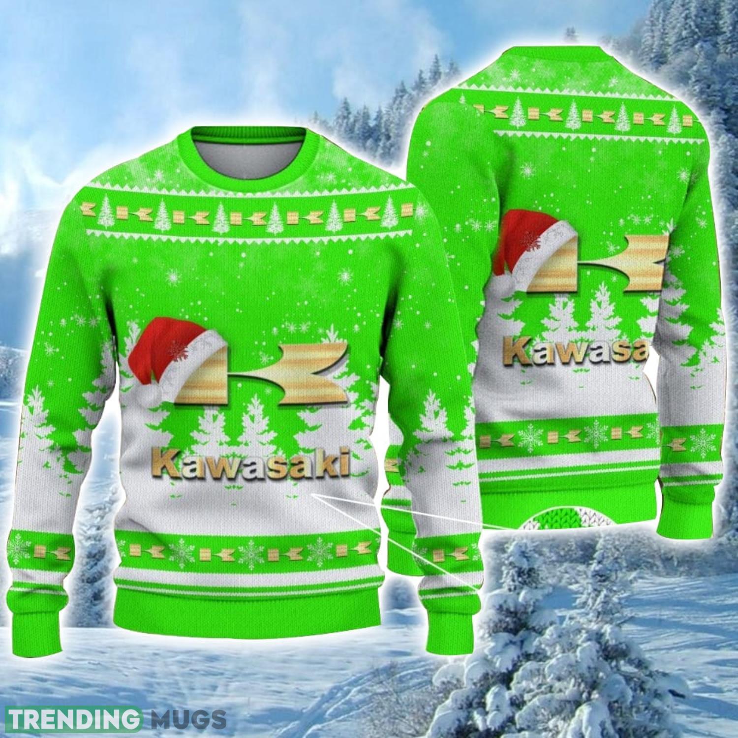 Kawasaki Logo Wearing Santa Hat Christmas Gift Ugly Christmas Sweater For Car Lover 3D Sweater Informations: