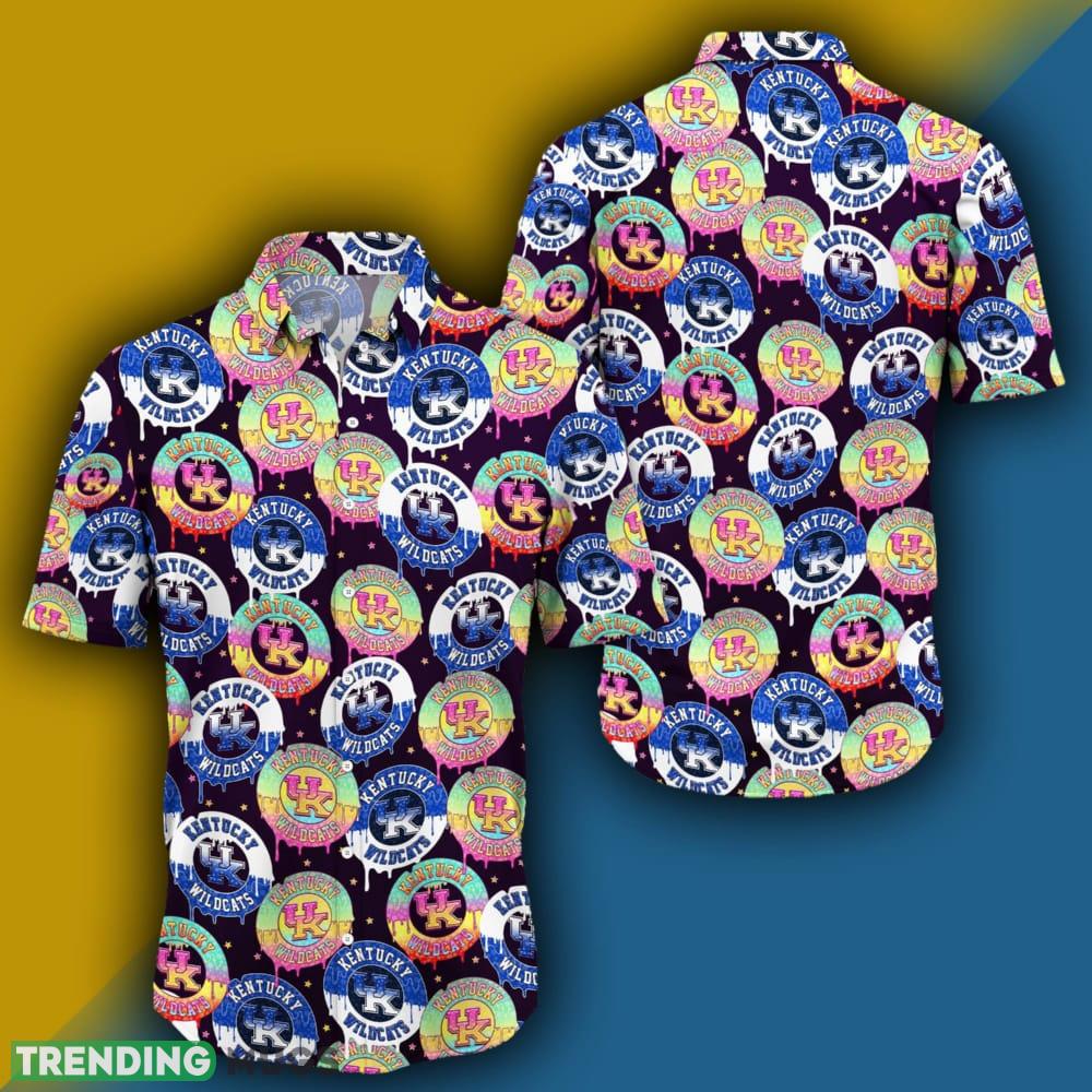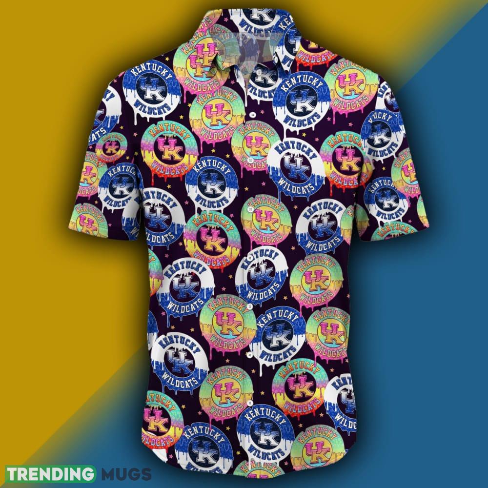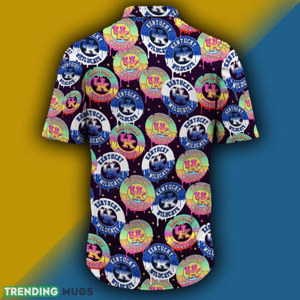 Featuring the iconic Kentucky Wildcats logo, this shirt allows you to proudly show off your team spirit while expressing your unique sense of style. The rainbow pattern adds a fun and playful touch, making this shirt a standout piece for any occasion.