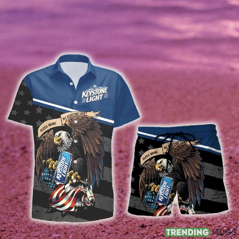 Keystone Light Eagle American Flag Gift Hawaiian Set Shirt And Short Summer Beach Details: