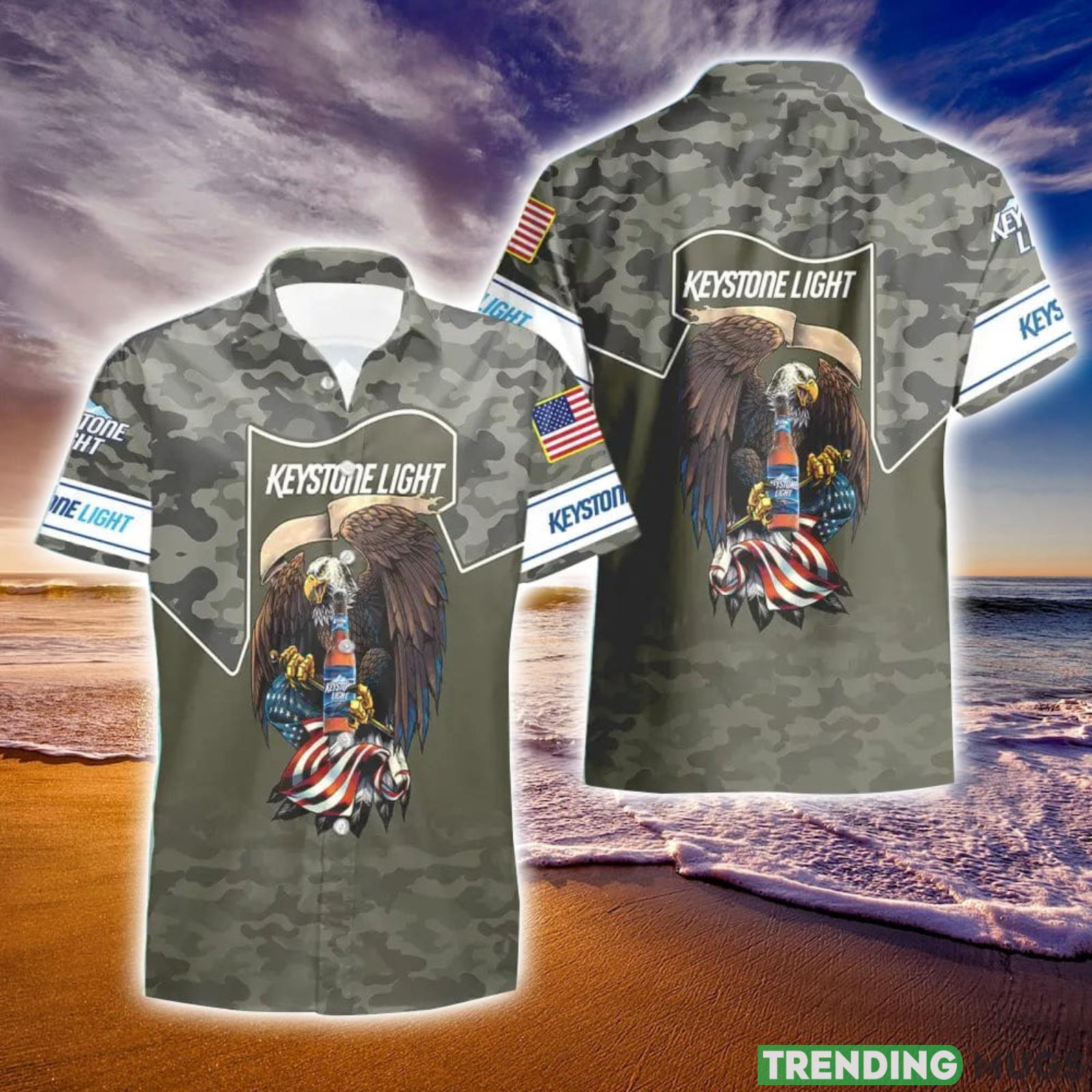 Keystone Light Green Camo Eagle Usa Flag Hawaiian Shirt And Shorts Best Gift For Summer Holiday Details: