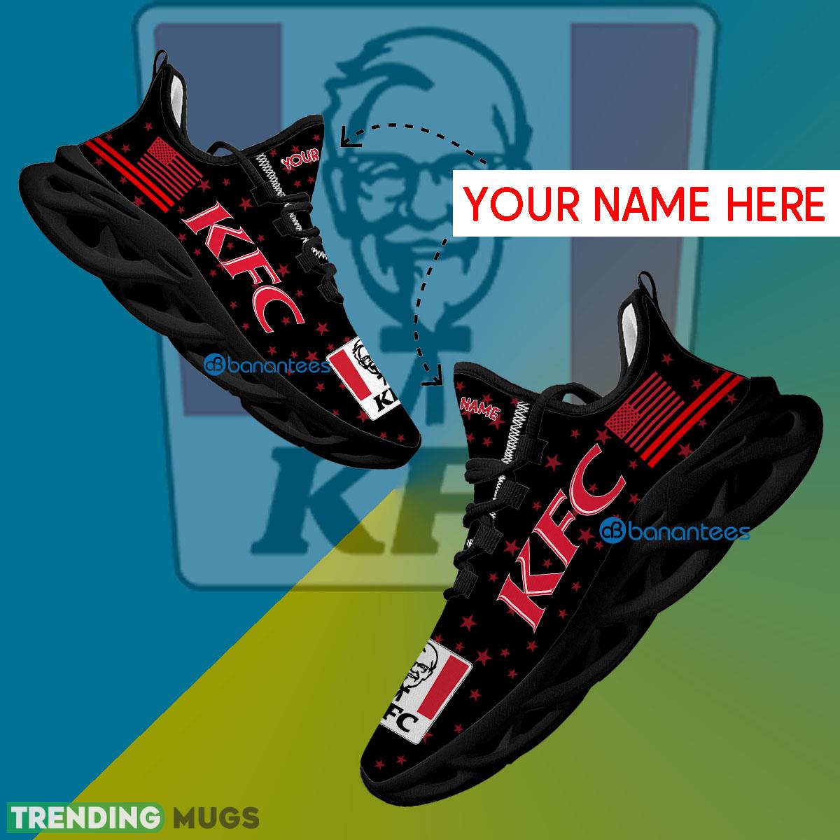 This KFC Running Sneaker Showcase Custom Name Gift Max Soul Shoes USA Flag Star New For Fans is a breathable, lightweight, and comfortable casual outdoor shoe that has a unique design. It is made of a mesh fabric which makes it sweat absorbent and breathable, while the rubber bottom ensures traction, comfort, and durability. It is available in two colors: black or white sole. There are two styles of shoelace holes so you can choose your preference.