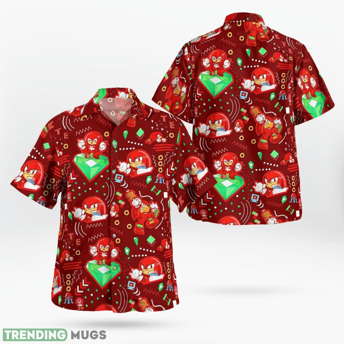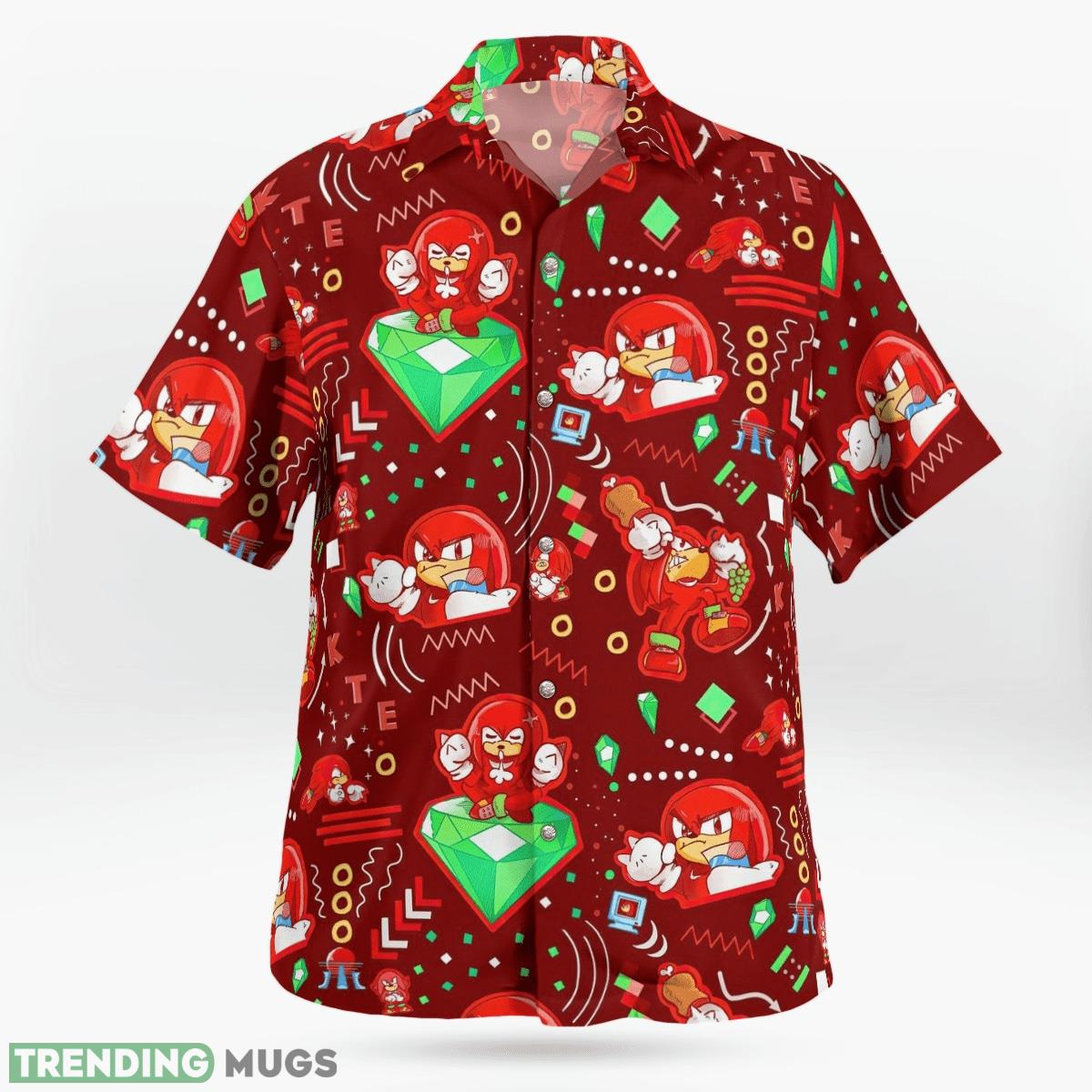 Crafted with utmost precision and attention to detail, our Hawaiian shirt features a charming print adorned with Knuckles the Hedgehog in various dynamic poses. The rich red backdrop beautifully complements the bold colors of the design, creating an irresistible visual appeal.