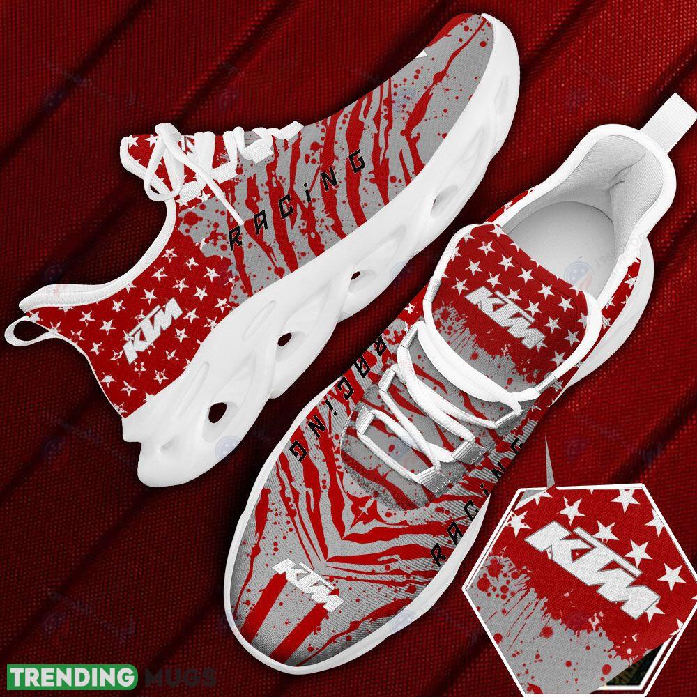 This KTM Car And Motorcycle Racing Chunky Shoes Red Max Soul Sneakers For Men Women is a breathable, lightweight, and comfortable casual outdoor shoe that has a unique design. It is made of a mesh fabric which makes it sweat absorbent and breathable, while the rubber bottom ensures traction, comfort, and durability. It is available in two colors: black or white sole. There are two styles of shoelace holes so you can choose your preference.