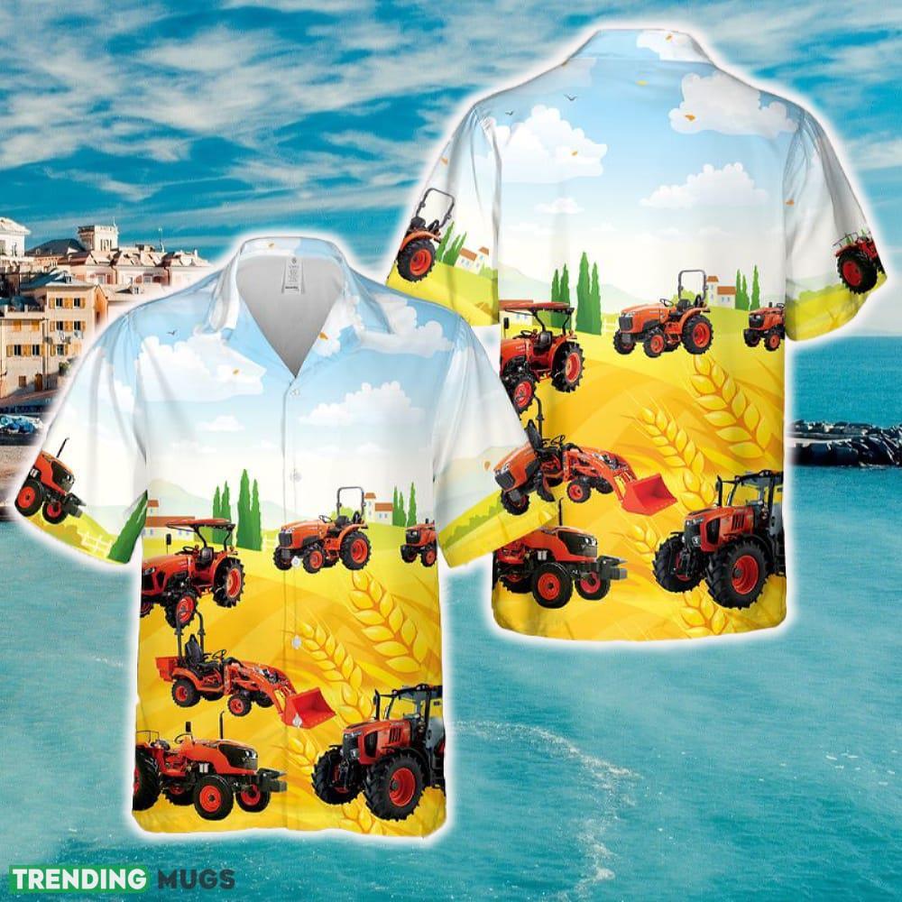 Featuring a vibrant Hawaiian print adorned with adorable Kubota tractors, this shirt is a true statement piece. The eye-catching design is sure to catch the attention of fellow Kubota enthusiasts and fashion-forward individuals alike. Whether you’re attending a summer BBQ, heading out for a casual day at the beach, or simply want to inject some fun into your wardrobe, this shirt is a must-have.