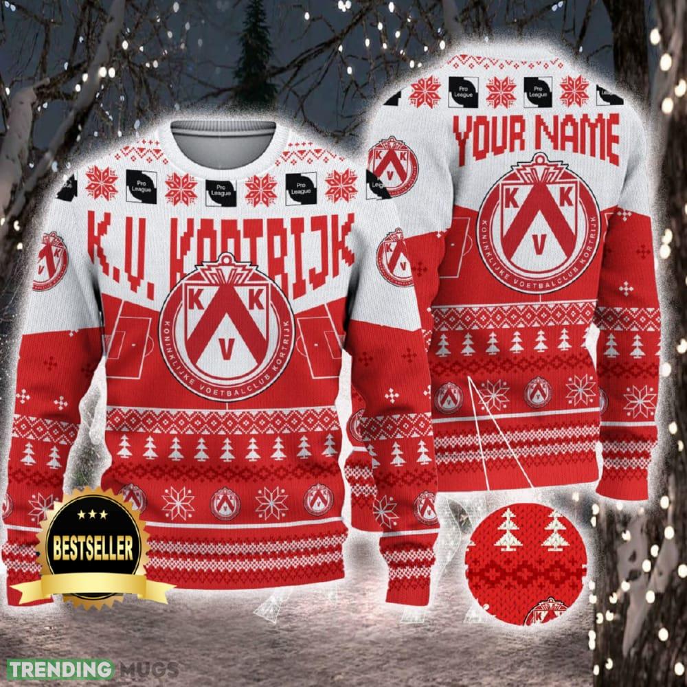 KV Kortrijk Ugly Christmas Sweater Logo Custom Name Gift Fans