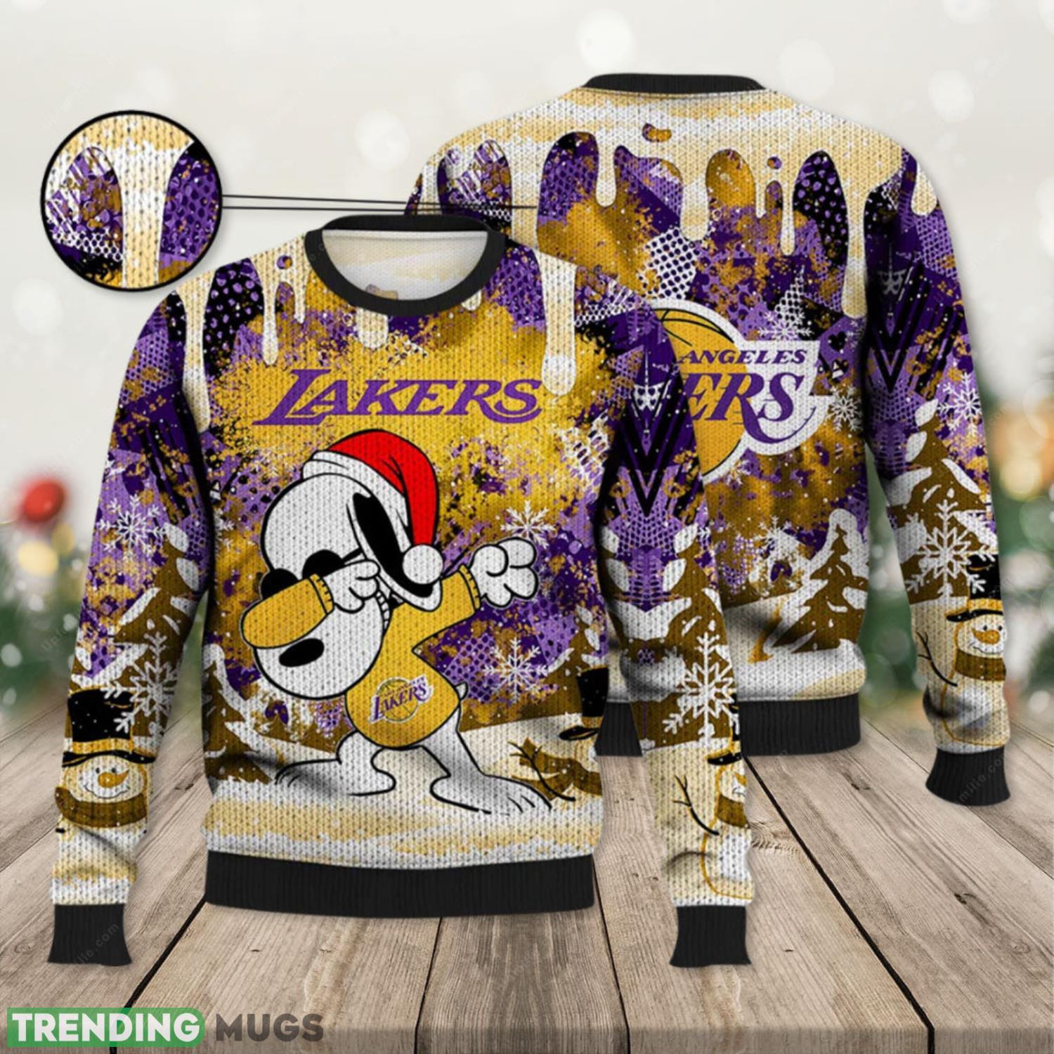 Lakers Ugly Sweater Snoopy Dabbing The Peanuts 3D Ugly Christmas Sweater Presents Christmas For Men And Women Product Photo 1