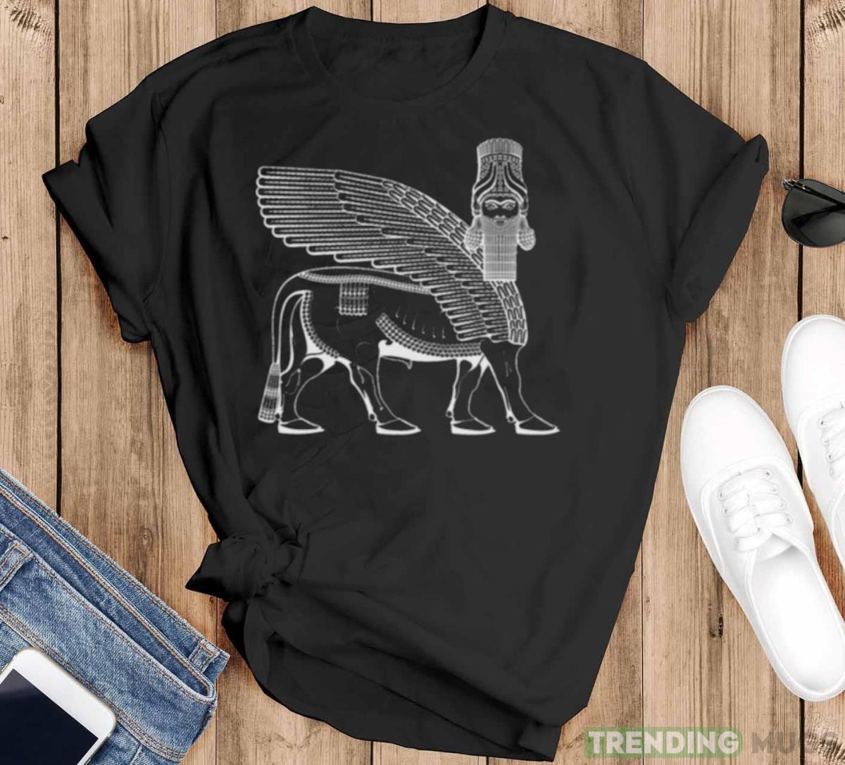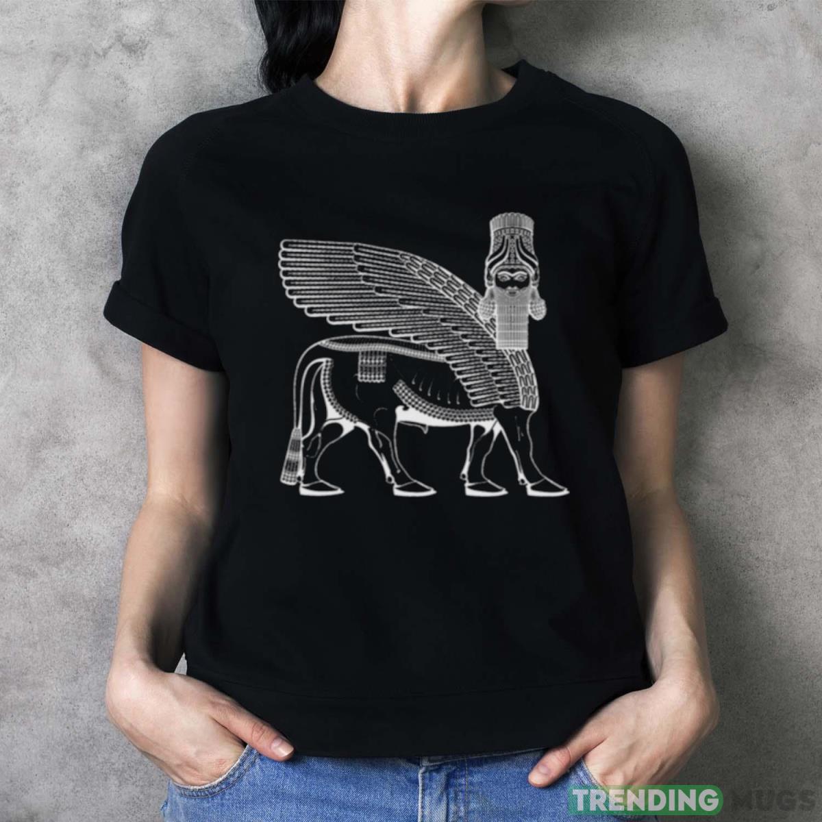 Be the embodiment of strength and grace as you don our Lamassu Winged Bull Front White shirt. Embrace the power of ancient legends and let your style soar to extraordinary levels. Order yours today and experience the magic firsthand.
