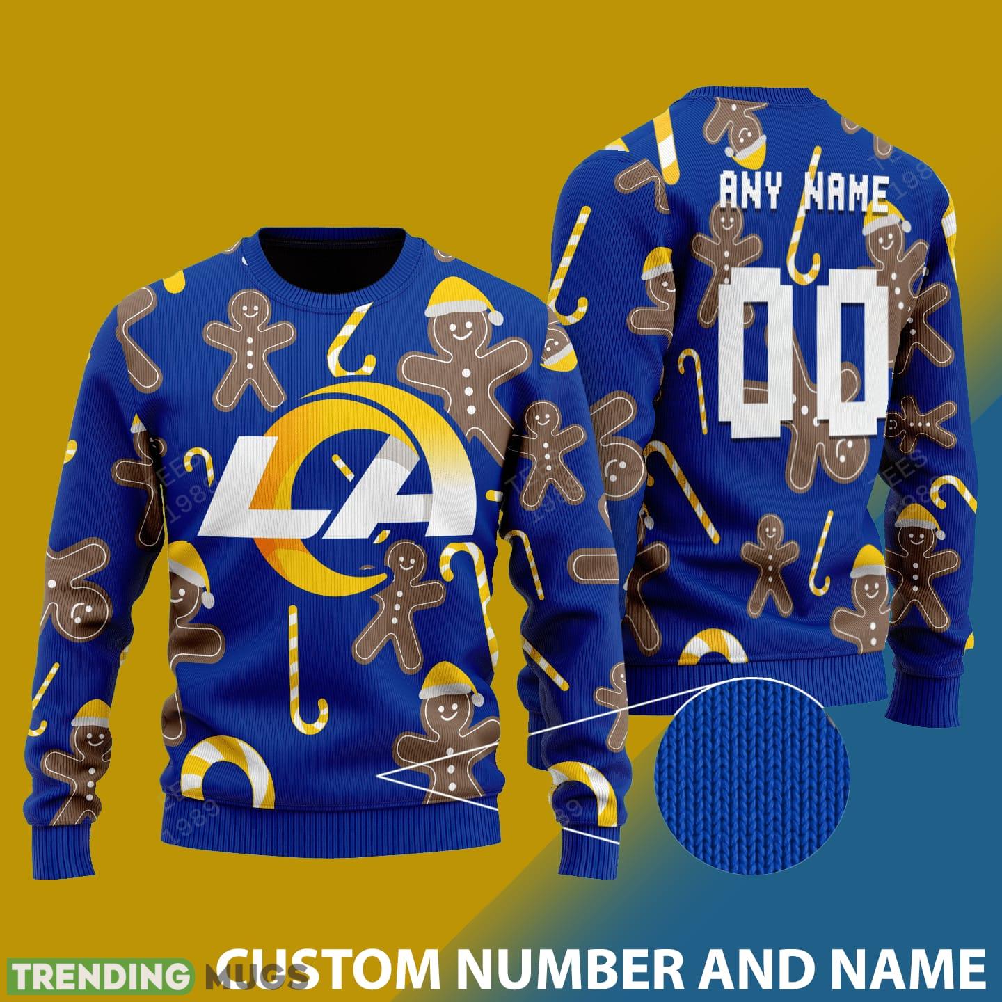 What makes this sweater truly special is the option to customize it with your own number and name. Showcase your team pride by personalizing your sweater with your favorite Rams player’s number or even your own lucky number. It’s a fantastic way to feel connected to the team while enjoying the holiday festivities.