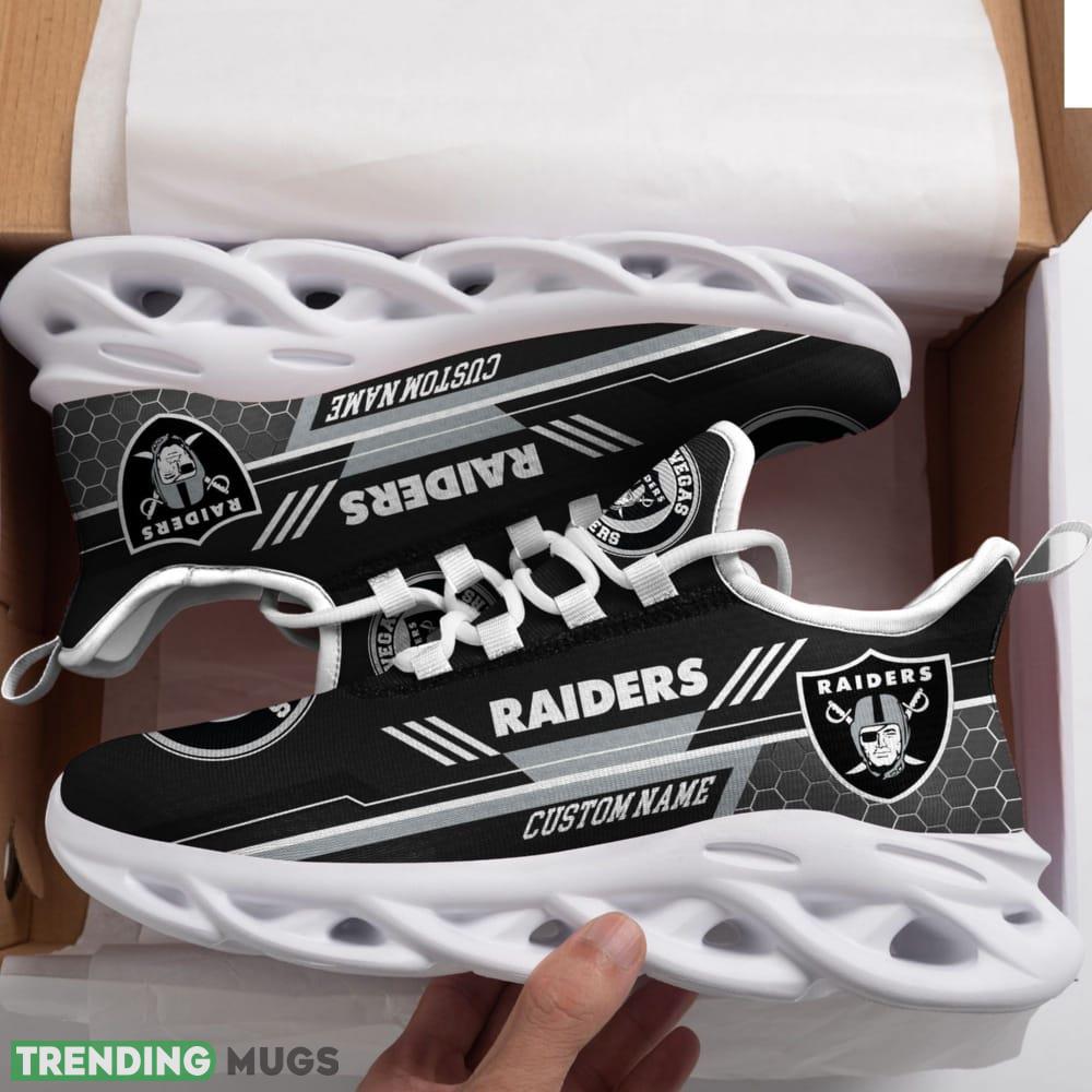 Las Vegas Raiders Logo Custom Name Pattern In Black And Gray 3D Max Soul Sneaker Shoes information: