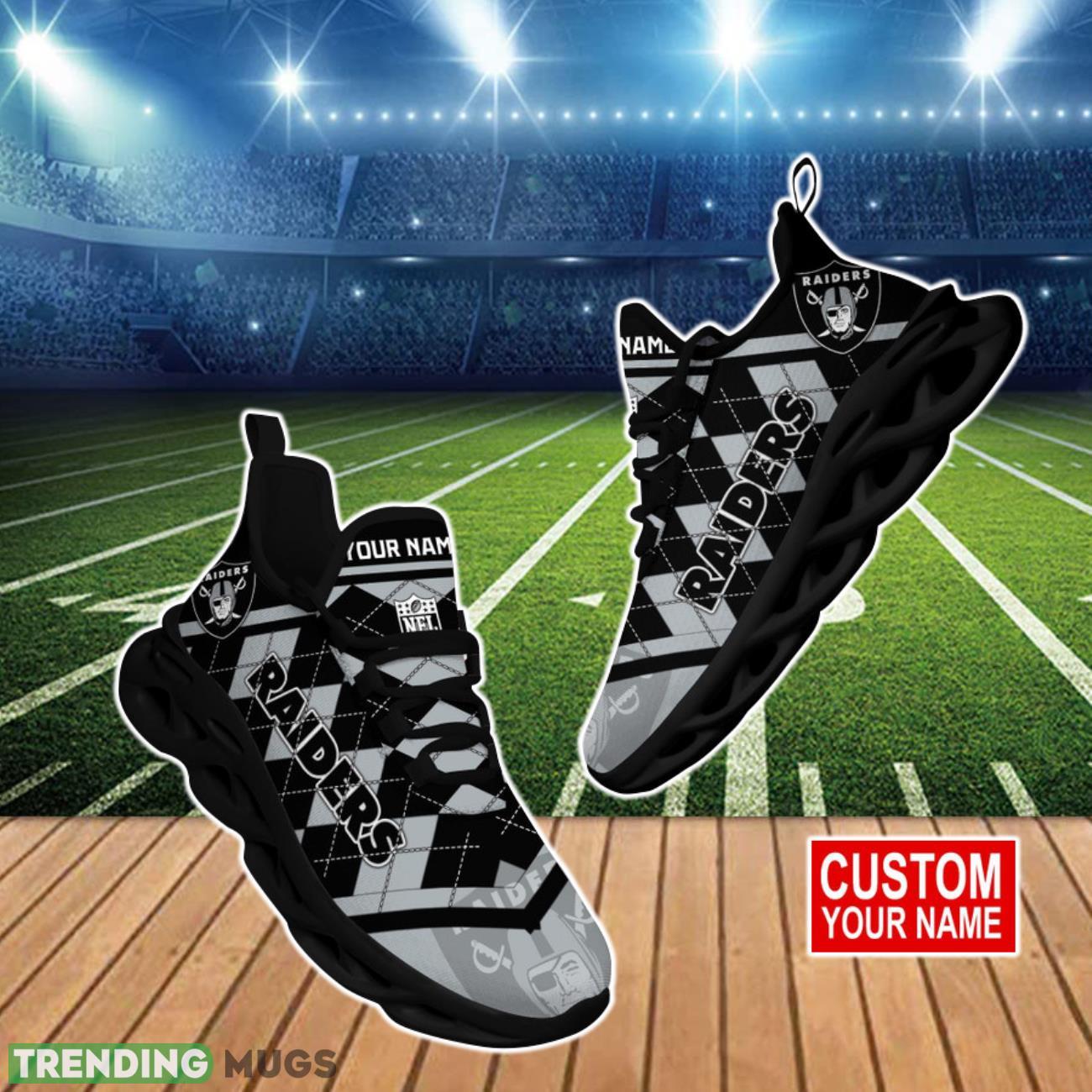 Elevate your game day style with our Las Vegas Raiders NFL Clunky Max Soul Shoes Custom Name. These shoes are the ideal gift for die-hard fans who want to show off their team spirit in a unique way. With a personalized touch, these shoes are sure to stand out in the crowd and make a statement. Made for comfort and durability, these shoes are perfect for cheering on your favorite team all season long. Don’t miss out on the opportunity to add these one-of-a-kind shoes to your collection. Order yours today and step up your fan gear game!