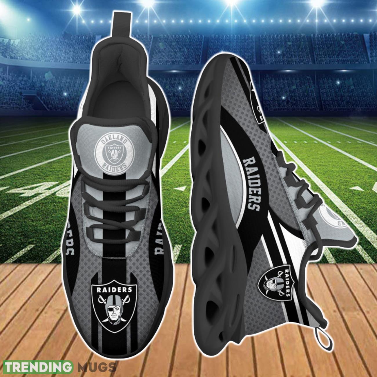 This Las Vegas Raiders NFL Clunky Max Soul Shoes Custom Name Special Gift For Real Fans is a breathable, lightweight, and comfortable casual outdoor shoe that has a unique design. It is made of a mesh fabric which makes it sweat absorbent and breathable, while the rubber bottom ensures traction, comfort, and durability. It is available in two colors: black or white sole. There are two styles of shoelace holes so you can choose your preference.