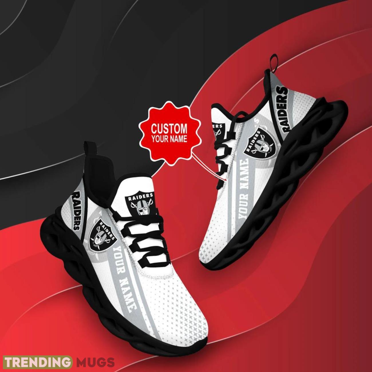 Elevate your game day style with our Las Vegas Raiders NFL Max Soul Shoes Custom Name Sneakers! These unique and personalized shoes are the perfect gift for any football fan, whether they’re a die-hard Raiders supporter or just love showing off their team spirit. Made for both men and women, these shoes are not only stylish but also comfortable, making them a great choice for all-day wear. Stand out from the crowd and show your support for the Raiders with these one-of-a-kind custom sneakers. Order yours today and step up your game day attire!